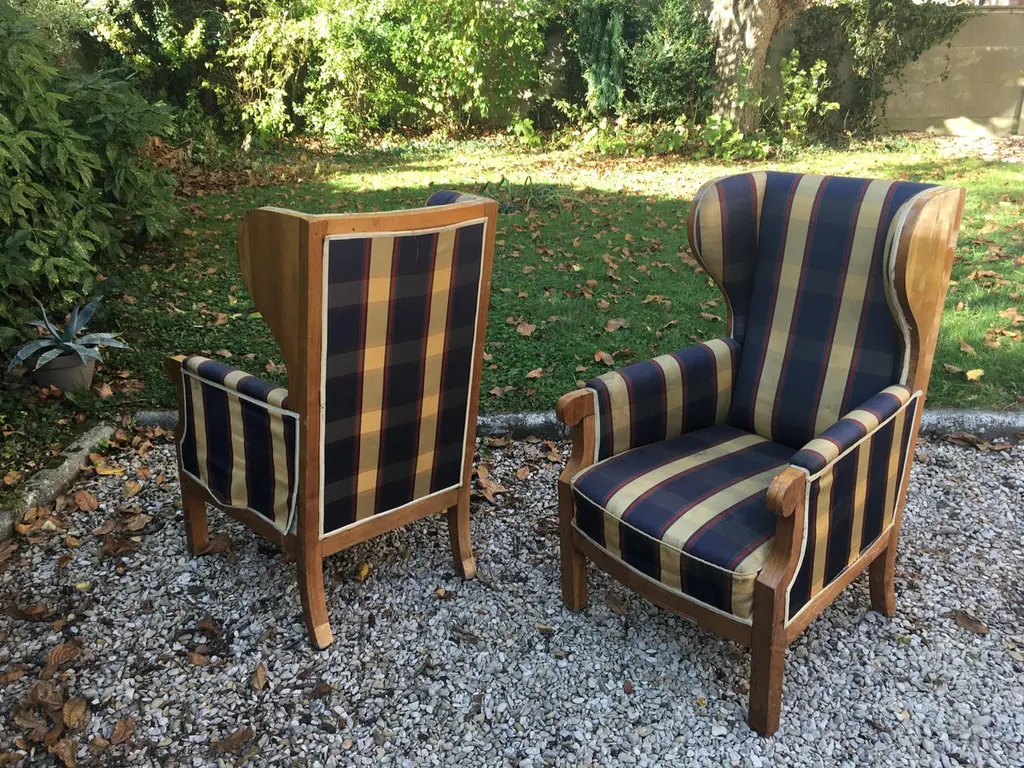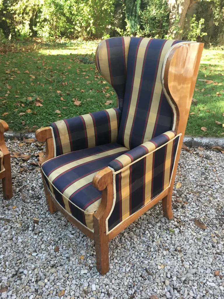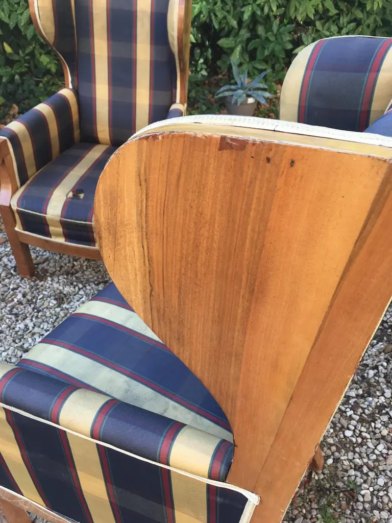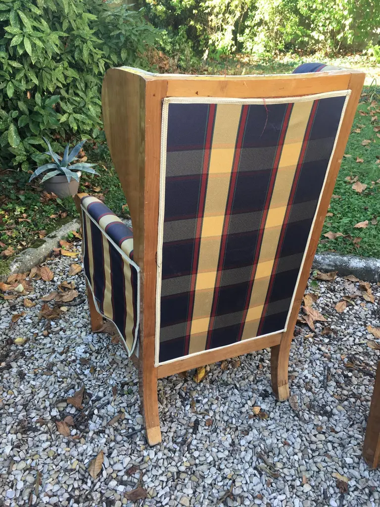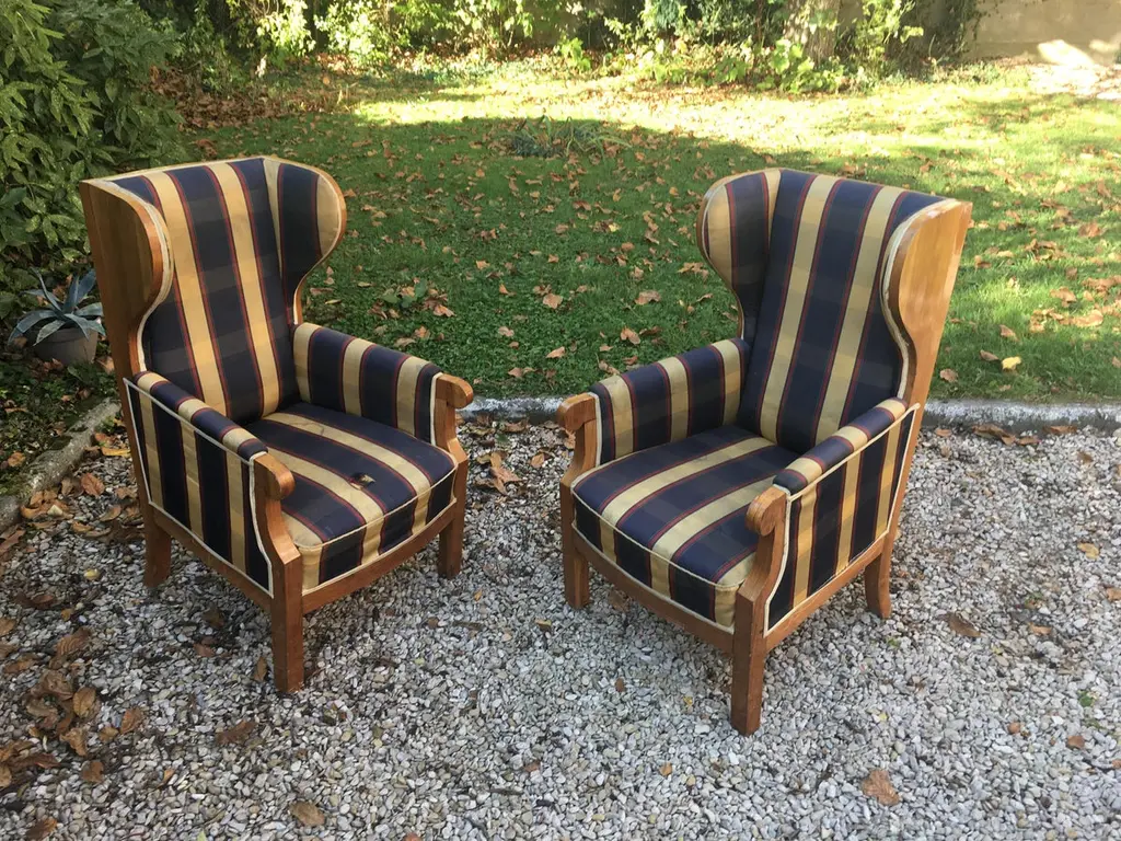 Pair of old walnut veneered wing chairslack of veneer, old restorations.price is for onetwo are available