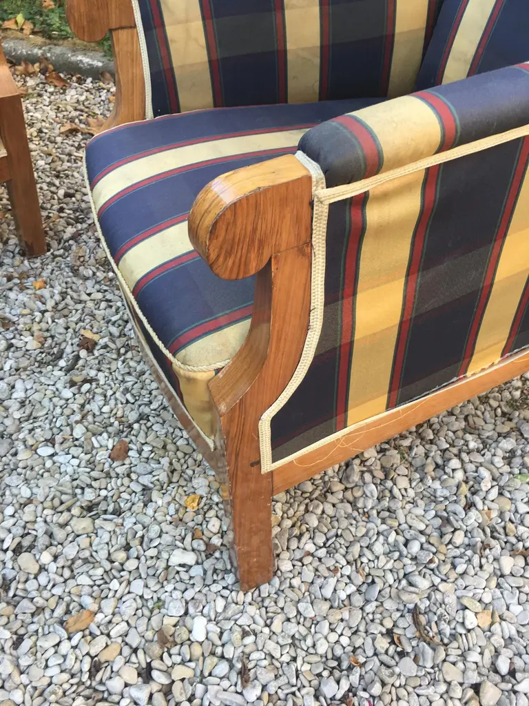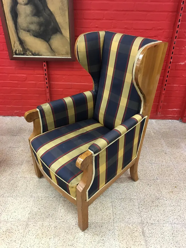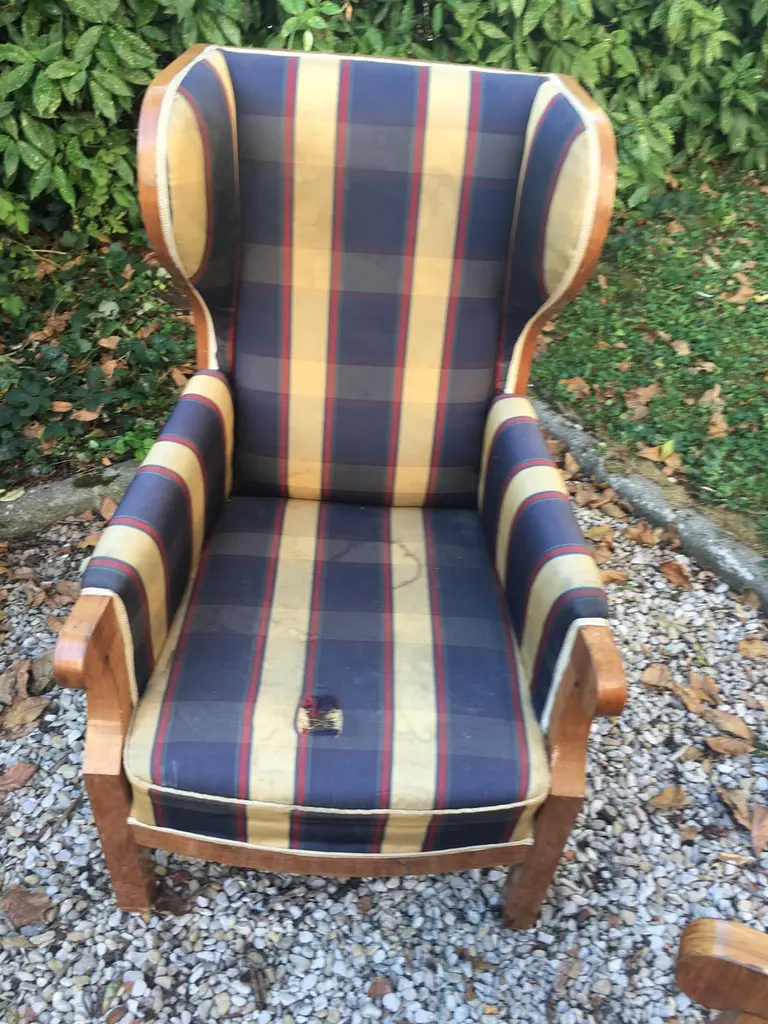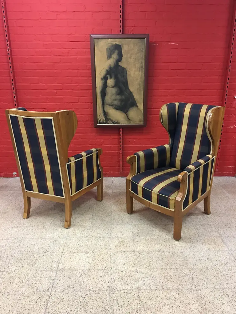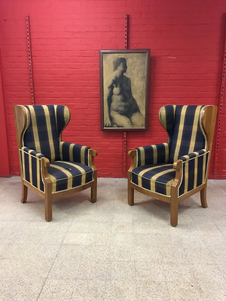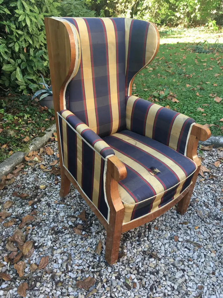 Pair of old walnut veneered wing chairslack of veneer, old restorations.price is for onetwo are available
