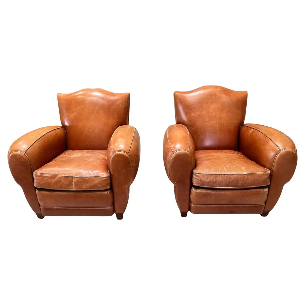 Pair Of Tufted Leather Mahogany Wingback 20th Century Chair