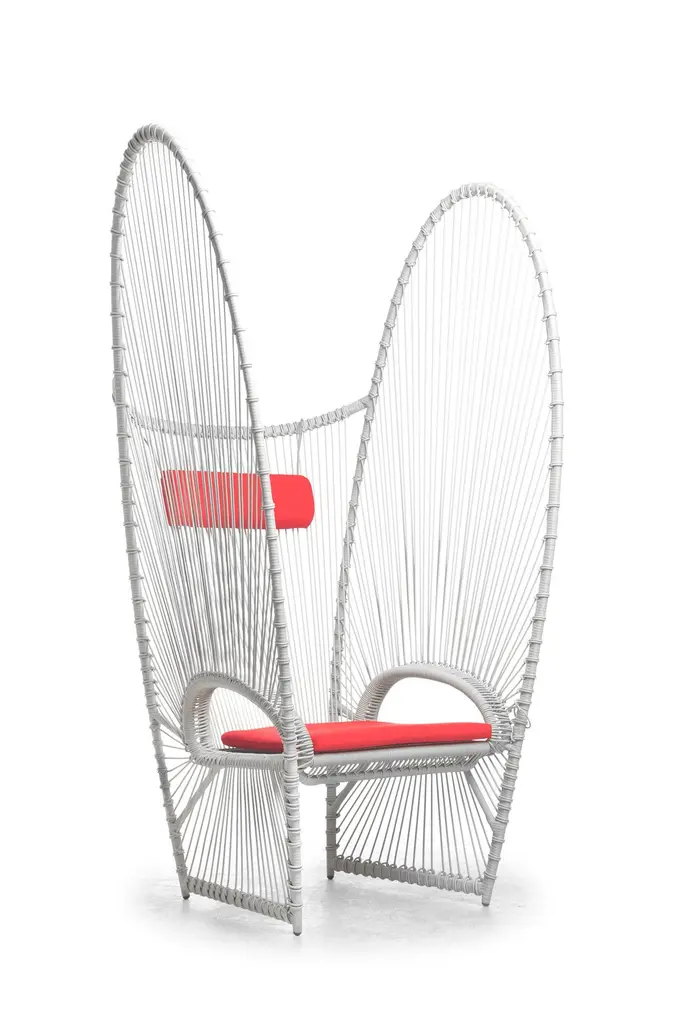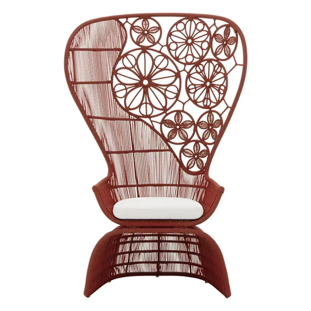 Papillon easy armchair by Kenneth Cobonpue.Materials: polyethelene, steel.Also available in other colors.Dimensions: 91 cm x 108 cm x H 192 cm. The Papillon easy armchair and swing feature handwoven polyethylene on a frame that’s shaped to resemble a butterfly’s fluttering wings. Breeze through a nice afternoon by the poolside in this collection that evokes a delicate lightness.Designer's BiographyKenneth Cobonpue is a multi-awarded furniture designer and manufacturer from Cebu, Philippines. His passage to design began in 1987, studying Industrial Design at the Pratt Institute in New York. While completing his studies, he apprenticed for a leather and wood workshop near Florence, Italy. He went on to study Furniture Marketing and Production at the Export-Akademie Baden-Württemberg in Reutlingen, Germany, under a private and state scholarship program, and subsequently worked in Bielefeld and Munich.Kenneth returned home to Cebu in 1996 to manage Interior Crafts of the Islands, Inc., a furniture design and manufacturing company founded by his mother Betty Cobonpue in 1972. Discovering that modern design could have a new face using natural fibers and materials, Kenneth created pieces of functional art, offering an alternative to the Western definition of modern design. Today, the Kennethcobonpue brand has become known globally for its unique designs and extensive roster of clientele, including Hollywood celebrities and members of royalty.With his masterful way of integrating nature, traditional craft and innovative technologies, designer and creative director Kenneth Cobonpue has earned international awards and recognition for his creative, organic, and expressive pieces. Working closely with some of the world’s leading designers, from household names to emerging talents, Kenneth has been pushing the envelope for design in the Philippines and sharing his vision to a global audience. Awards to his credit include five Japan Good Design Awards, the grand prize at Singapore International Design Competition, the Design for Asia Award of Hong Kong, the American Society of Interior Design Top Pick selection and the French Coup de Coeur award. Several of his designs were selected for several editions of the International Design Yearbook published in London and New York. Phaidon’s book entitled “& FORK” underscores Kenneth’s position as a leader of a new movement incorporating new technologies with crafts. In 2007, TIME magazine called him “rattan’s first virtuoso”. Kenneth was named the Designer of the Year in the first edition of Maison et Objet Asia held in March 2014 in Singapore.Kenneth reveals new work each year in the design shows from Milan to New York, and he speaks regularly about Southeast Asian design all over the world. He has also appeared in European television and in countless international magazines and newspapers around the world. Various Cobonpue designs have also appeared in full-length feature films and television, such as Oceans 13 and CSI.