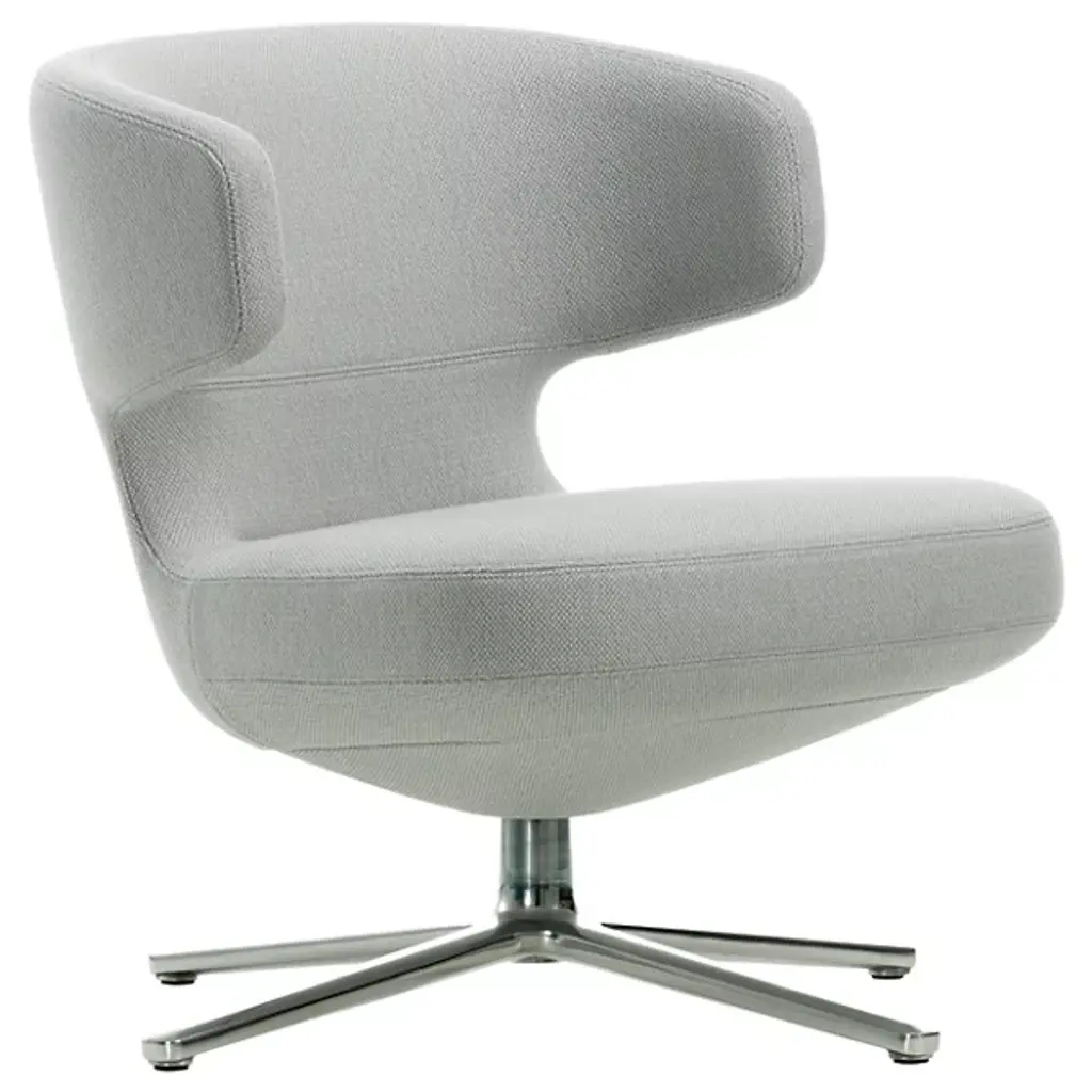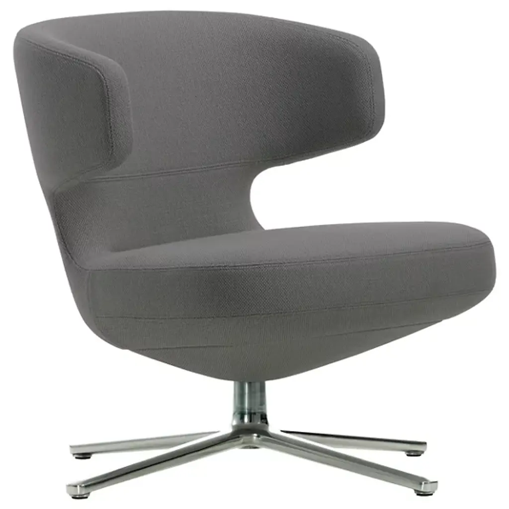 The Repos collection's contemporary take on a club chair. The Vitra Petit Repos Lounge Chair was designed by Antonio Citterio for the ultimate in comfort, with distinctive embracing wings, a low seat and an integrated flexible back connection for support when leaning back. The sophisticated look and feel are completed by finely tailored fabric or leather upholstery.