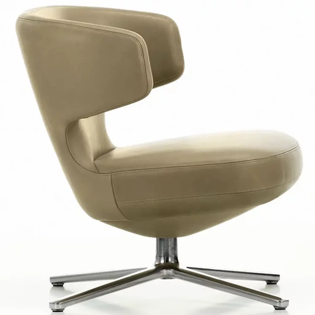 The Repos collection's contemporary take on a club chair. The Vitra Petit Repos Lounge Chair was designed by Antonio Citterio for the ultimate in comfort, with distinctive embracing wings, a low seat and an integrated flexible back connection for support when leaning back. The sophisticated look and feel are completed by finely tailored fabric or leather upholstery.