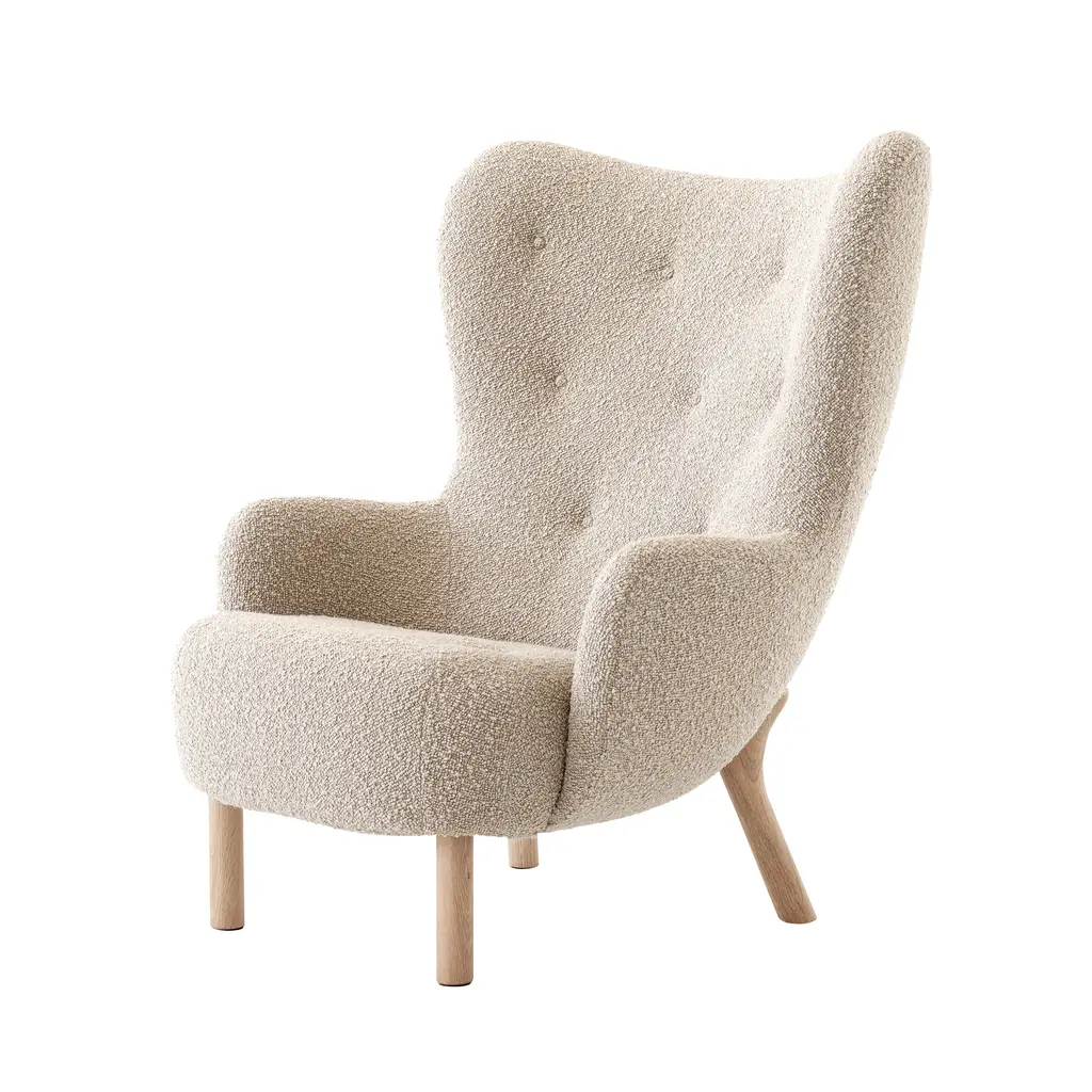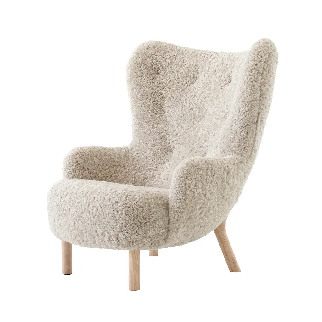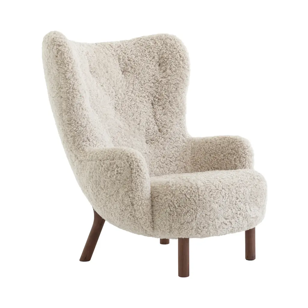 The Petra Lounge Chair features a high, winged backrest that offers excellent support and a distinctive look, continuing the legacy of its baby sister Little Petra. The big brother to the bestselling Little Petra chair, designed in 1938 by Danish designer Viggo Boesen. This lounge chair features a high-set, winged backrest and a generously cushioned seat, providing unparalleled comfort. It showcases Boesen’s signature “funkis” style, characterized by fluid, organic forms that embrace the body naturally.