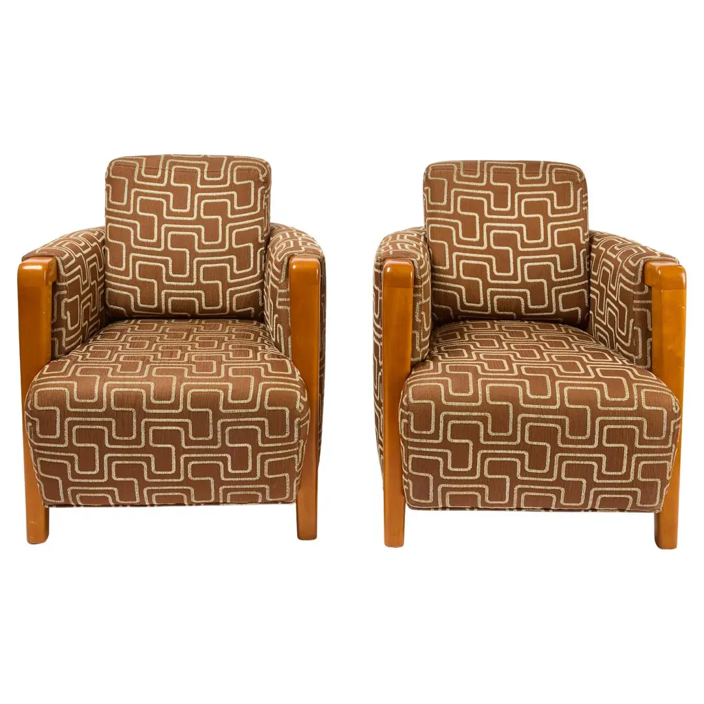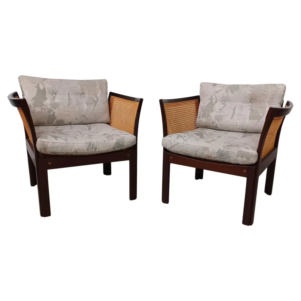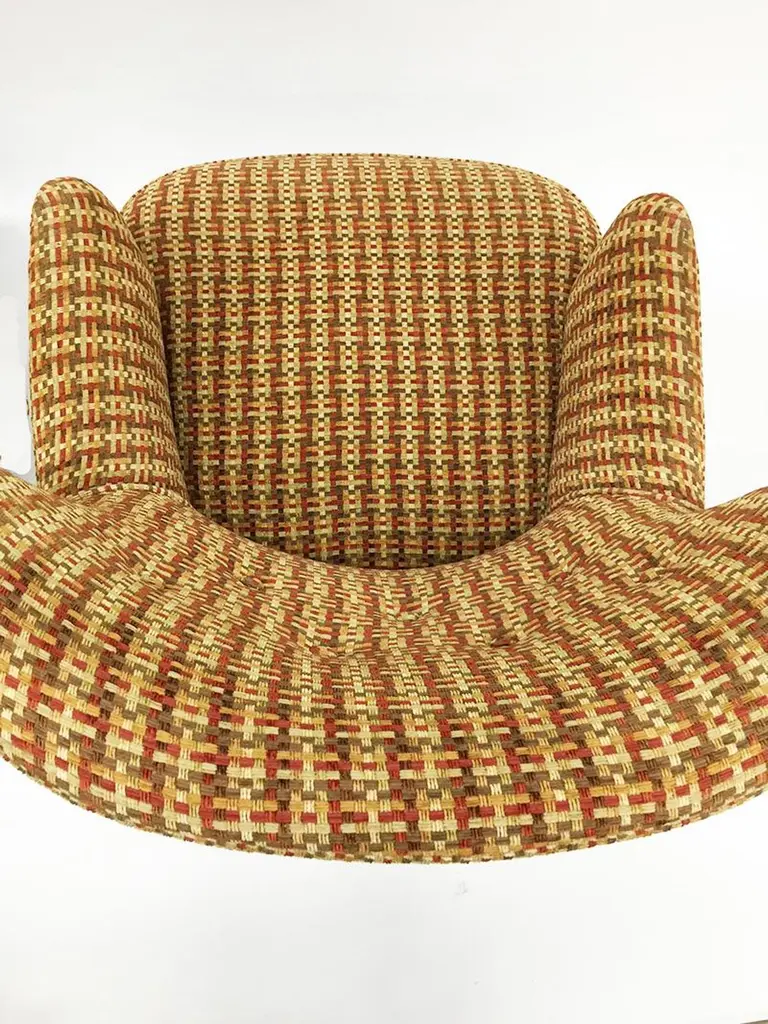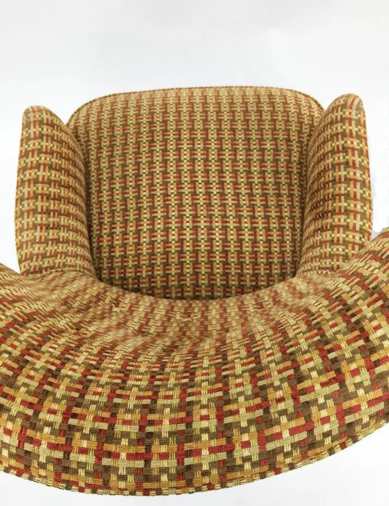 Theo Ruth lounge chairs for ArtifortThe Netherlands, 1950sOne lounge chair with a highly winged back and 3 rows buttonsOne lounge chair with a low winged back and 2 rows buttonsThe upholstery is a multi colored woven fabricThe measurements 93 cm high, the depth is 59 cm and 71 cm wide The seat height is 42 cm 83 cm high, the depth is 56 cm and 65 cm wide The seat height is 42 cmThe chairs are in very good Vintage condition.