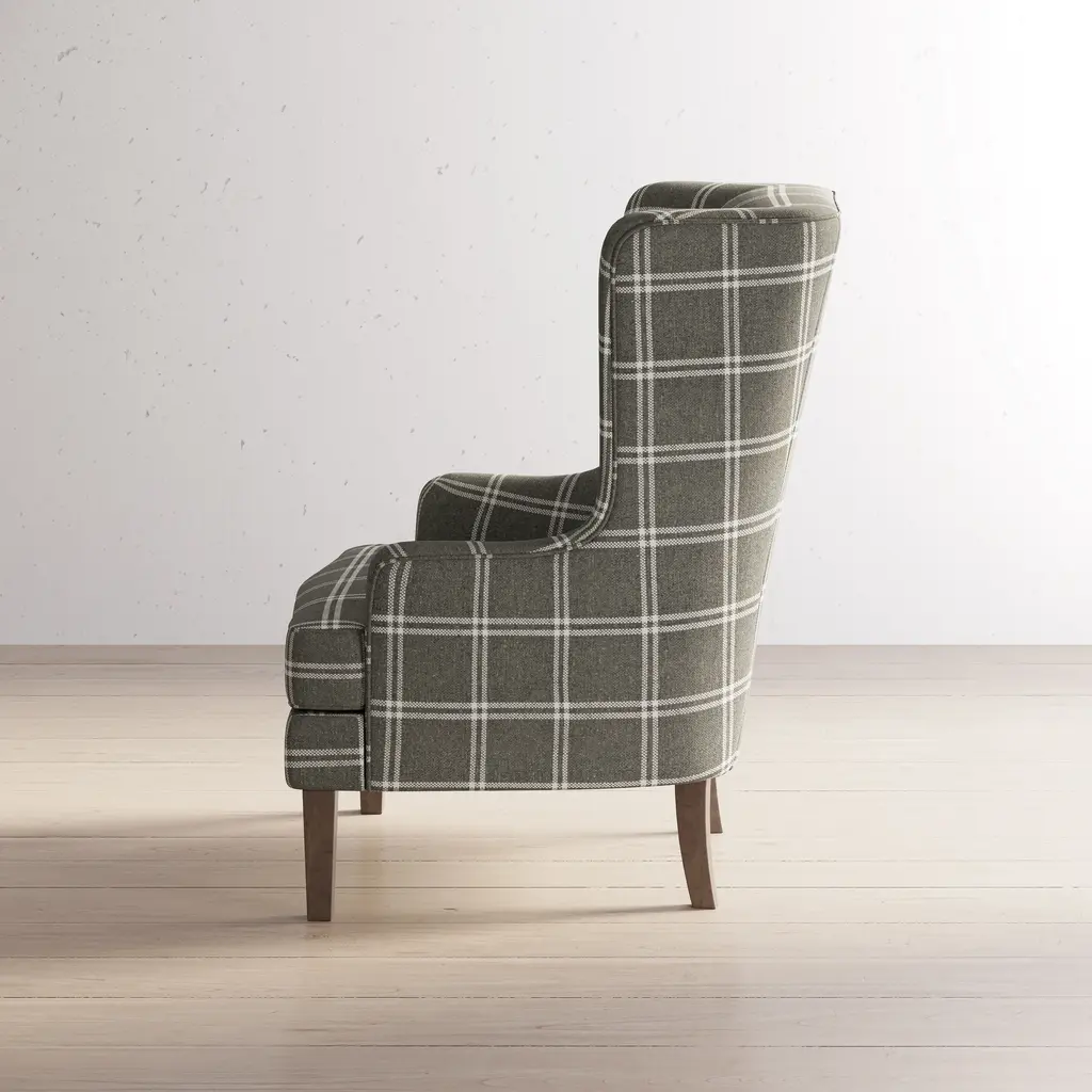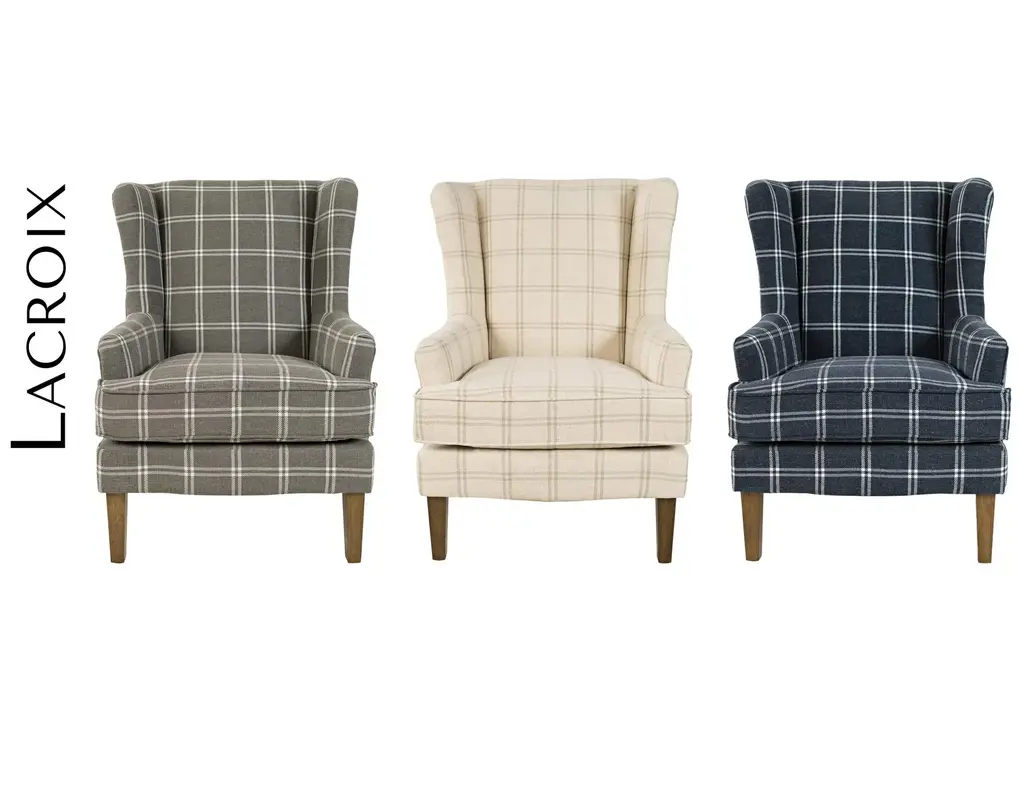 Add a touch of classic elegance with this accent chair, featuring a simple cross plaid design that exudes a tailored and timeless look. The chair's modified wingback silhouette and removable/reversible seat cushion make it as functional as it is stylish. Whether you're looking for a cozy corner to curl up in with a book or a statement piece to elevate your living space, Lacroix is the perfect addition to your home decor. From the Manufacturer Lacroix’s tailored, timeless look with a simple cross plaid design, adds a classic elegance to any room. Available in three colorways: Graphite, Navy and Parchment.