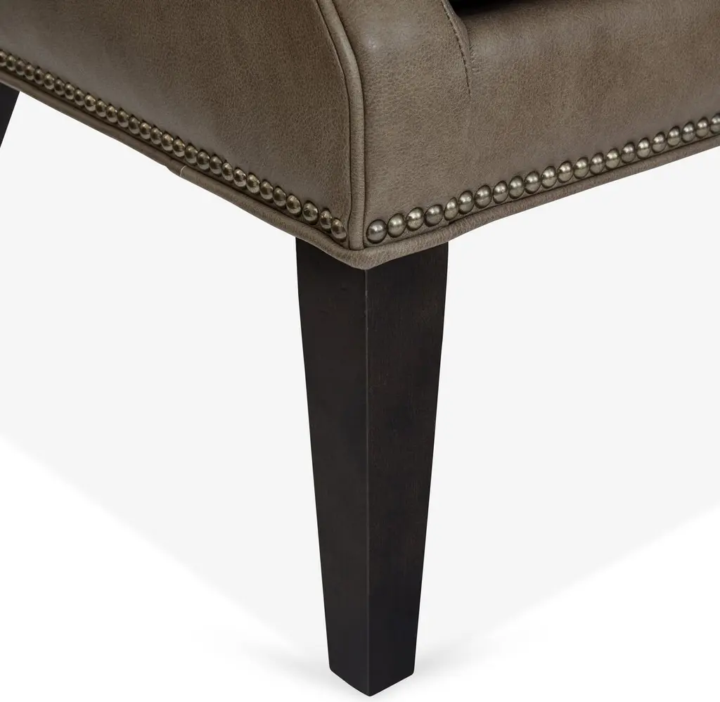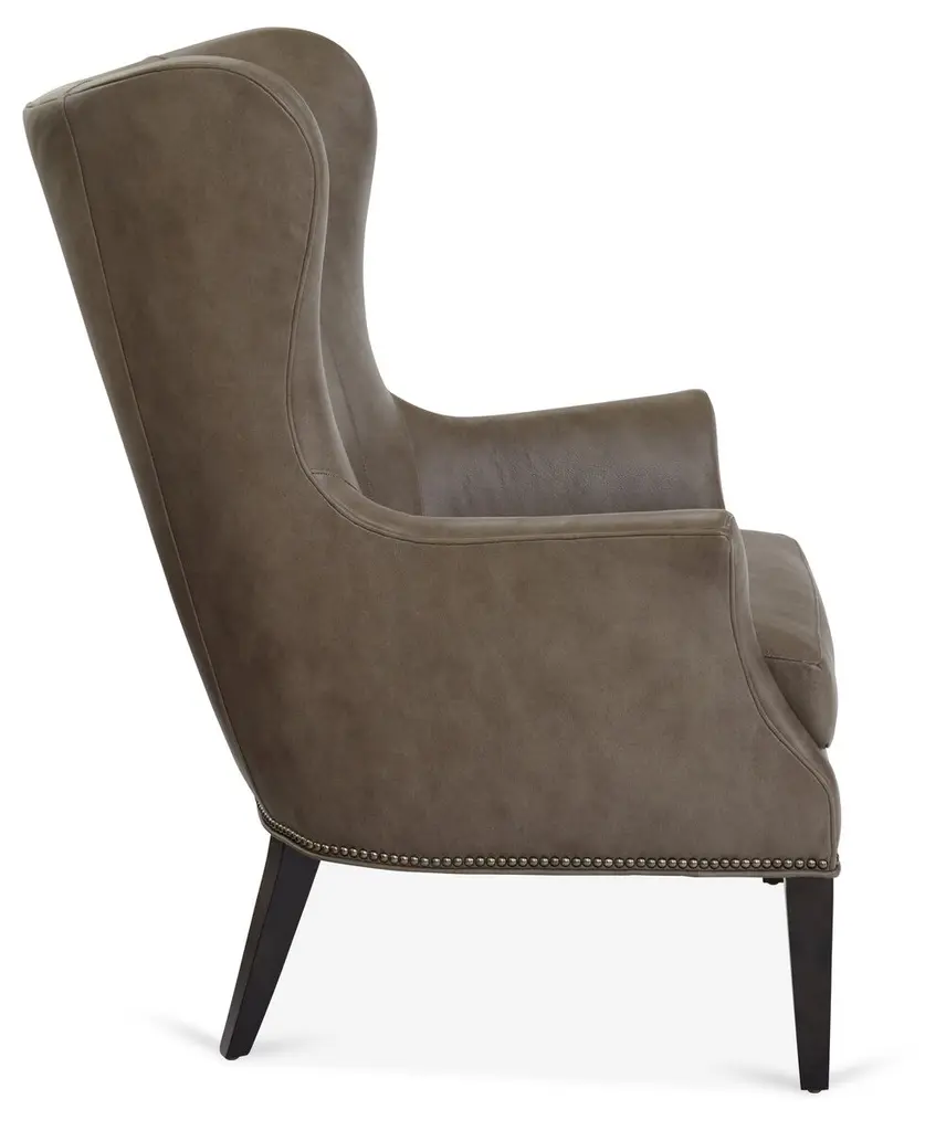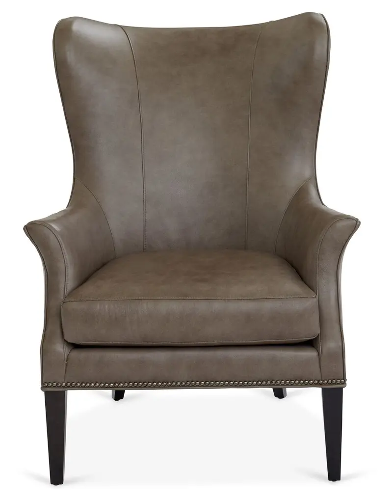 Defined by its enveloping seat back, padded leather upholstery, and kiln-dried hardwood legs, we love this timeless wingback for laid-back lounging and casual conversation. Pierced nailheads along its apron finish the design with an element of structure and shine. Handcrafted in North Carolina.