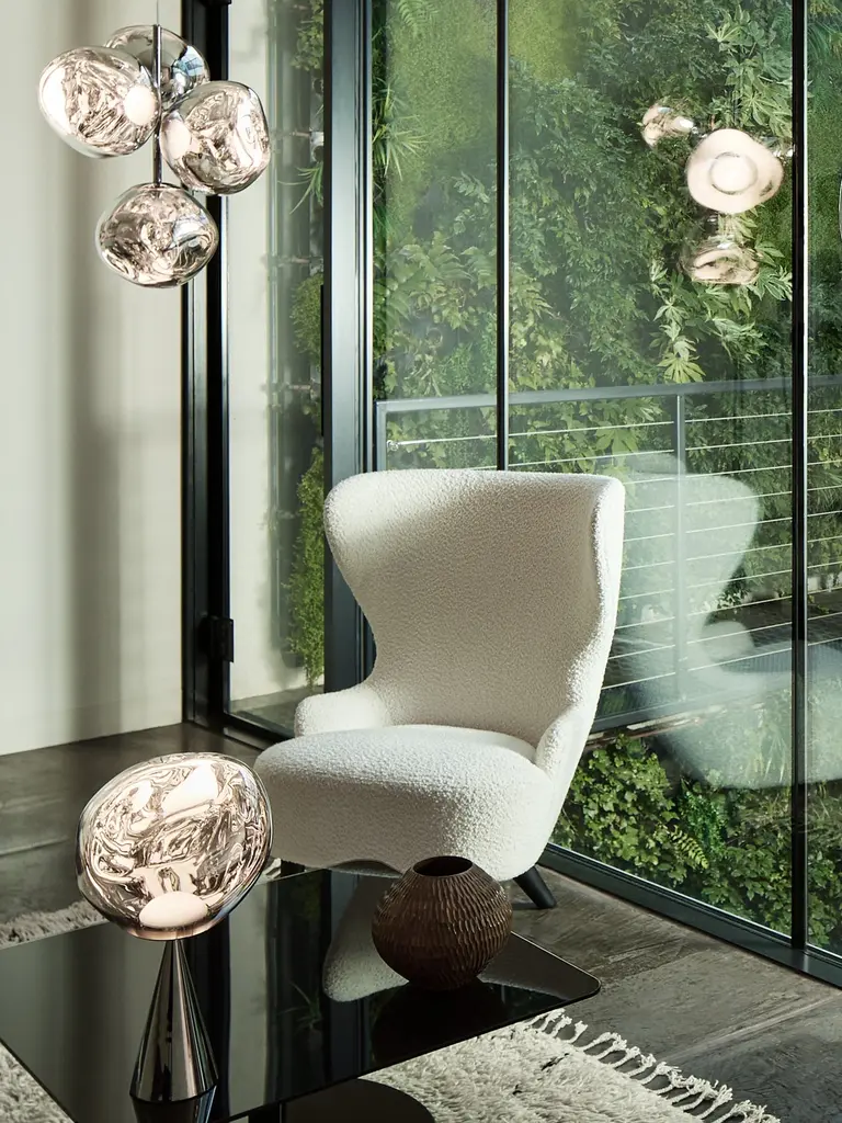 Wingback is a nod to 17th century English wingback and balloon back archetypes, rethought and updated for the 21st century. Its recognisable silhouette with expressive sweeping curves is formed through a hard sculptural foam shell, concealing a steel frame with a modelled plywood base. It is then covered with cut foam and given a pocket-sprung seat cushion for maximum comfort.