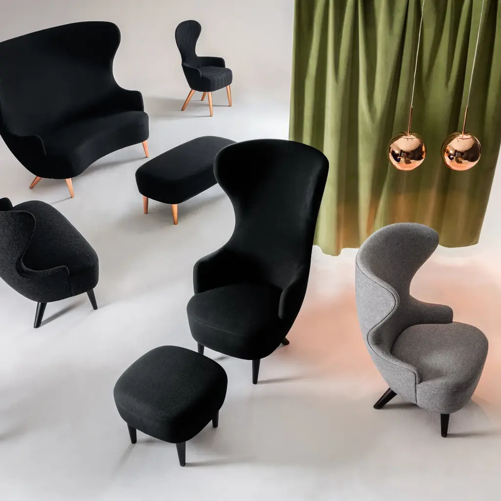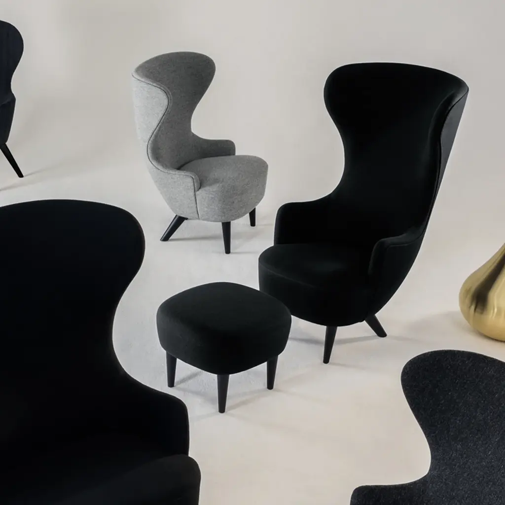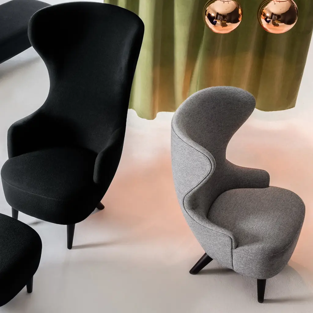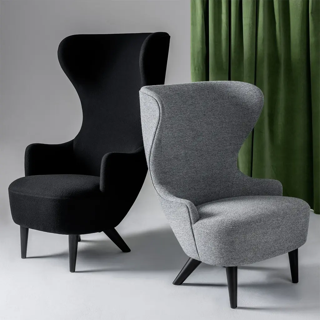 Design superstar Tom Dixon's Micro Wingback Chair riffs on the iconic 18th century balloon chair with a sculptural aplomb.The seating's sensuous lines reveal ergonomically inclined comfort and lumbar support from the hard polyurethane foam shell. Choose from a range of colors and Kvadrat fabrics, with solid oak chair legs in either natural or black finish or gleaming copper-plated steel. A true showstopper in any setting, be it residential or commercial.