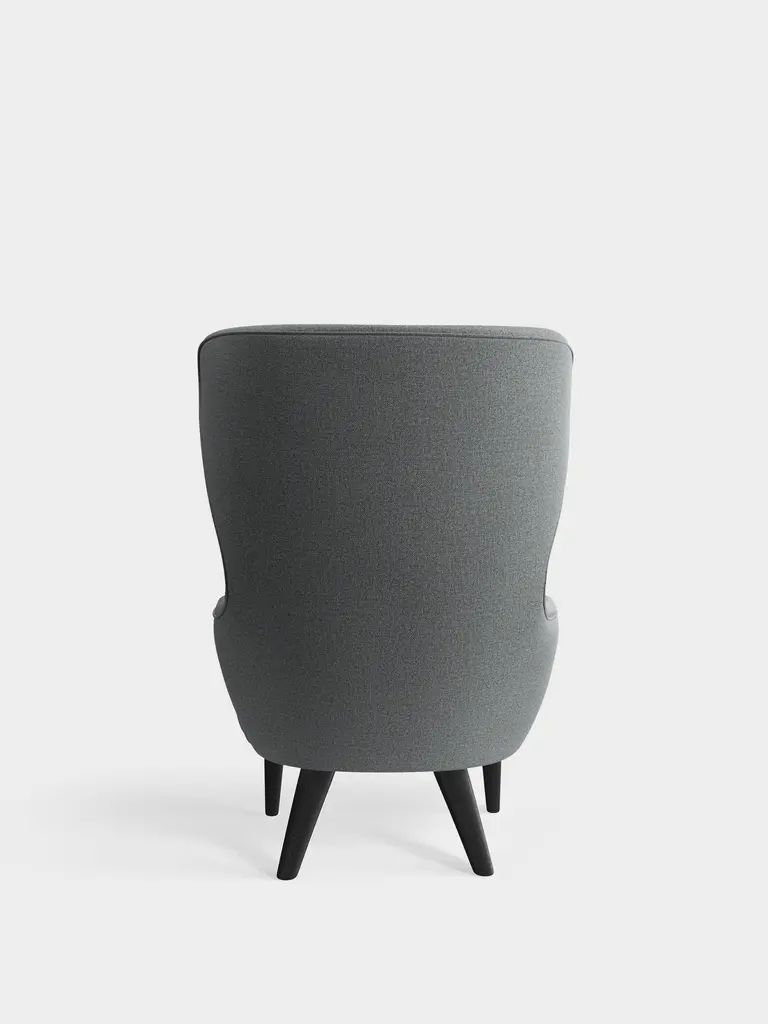 Wingback is a nod to 17th century English wingback and balloon back archetypes, rethought and updated for the 21st century. Its recognisable silhouette with expressive sweeping curves is formed through a hard sculptural foam shell, concealing a steel frame with a modelled plywood base. It is then covered with cut foam and given a pocket-sprung seat cushion for maximum comfort.