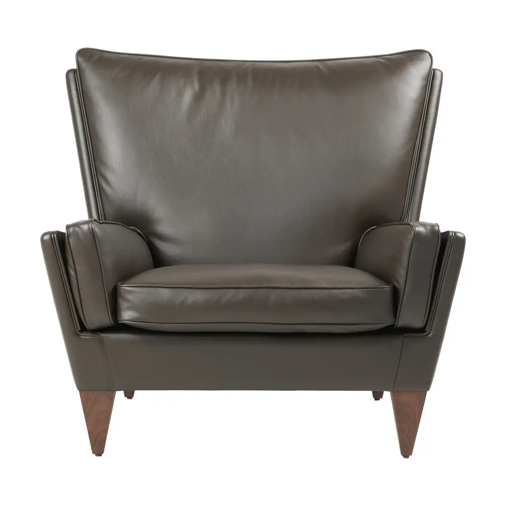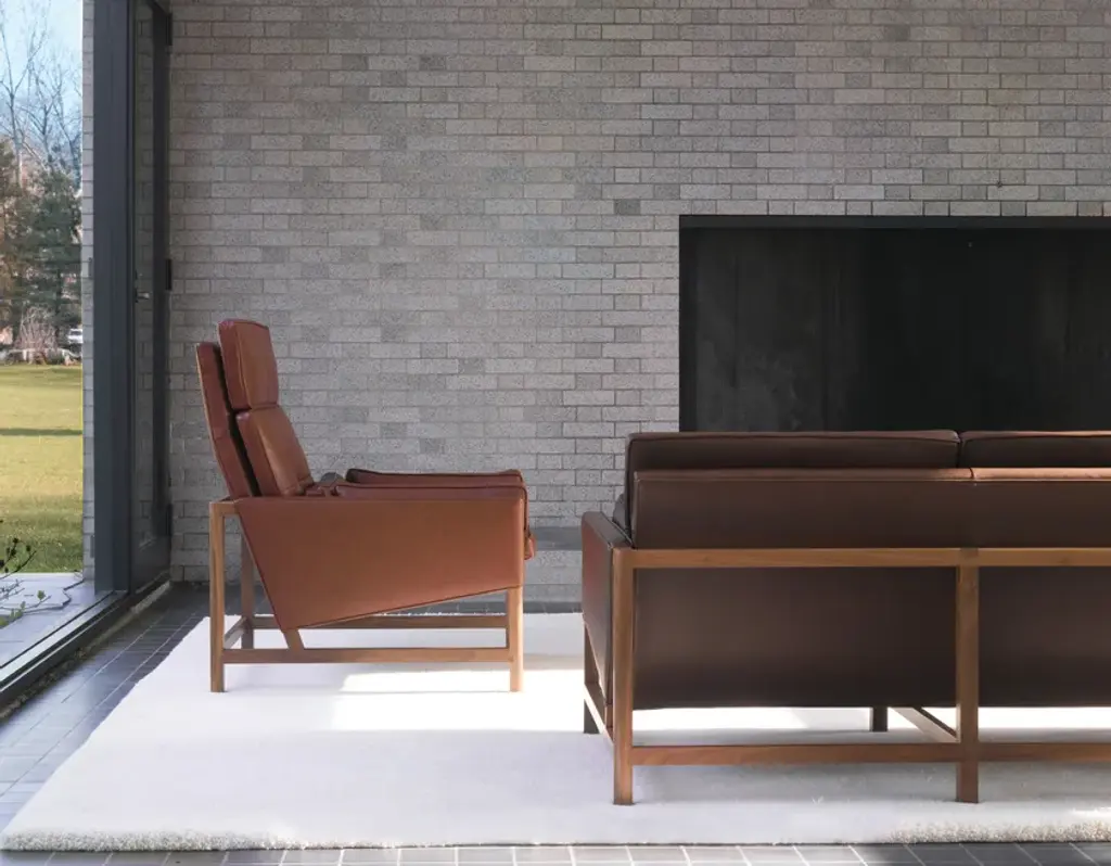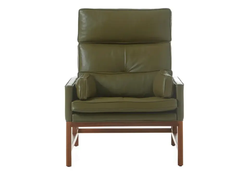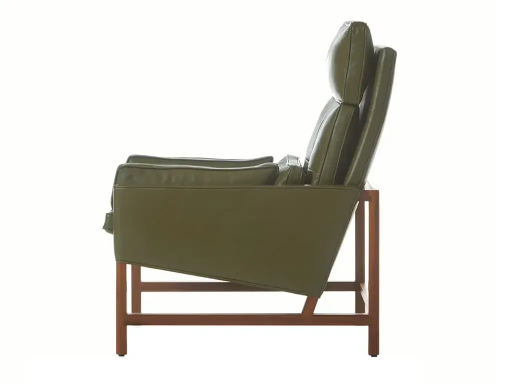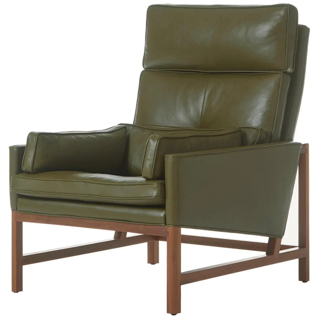The High Back Lounge Chair is an upholstered lounge chair with an exposed carved, solid wood frame. Seat and back cushions are comprised of variable density foam surrounded by feather and down. Lumbar and bolster cushions are comprised of feather and down and feature hand sewn leather lacing details. Materials: Exposed frame in solid Walnut, Oak, Ash, or Ebonized Ash.“Living in a glass house makes you design pieces to look immaculate from every angle,” says Craig Bassam, who designed the BassamFellows Wood Frame Lounge Collection for his own home. The outcome is a remarkably lightweight, yet sophisticated lounge range that looks extremely elegant however it is eventually displayed. Despite being conceived ‘in the round,’ the lounges are infinitely adaptable pieces, appearing as chic in downtown Manhattan lofts as they do in Connecticut modernist homes. This versatility is the result of the lounge’s sublime, rigorously conceived form, which deconstructs the bulkiness of traditional lounge seating. As such, the form is reduced to its essence — an exposed structural wood frame elevated to fine cabinetry and a system of thin, layered cushions for ultimate comfort. The structural honesty achieves the appearance of a “floating” seat, angled for ergonomic balance, allowing the user to settle in rather than perch. The Wood Frame series includes a low back, a high back, and a reinterpretation of a classic wing back – all available in club chair, settee, and sofa versions. Comfort is also of utmost importance. Within its minimal profile are seat and back cushions comprised of a variable density foam core surrounded by plush down and feather pillows that are hand sewn, tufted and welted. Lumbar and bolster cushions are removable and are comprised of down and feather fill. Upholstery options for this new modern classic include a rich palette of natural grain leathers from Scandinavian hides and a curated selection of fine textiles.
