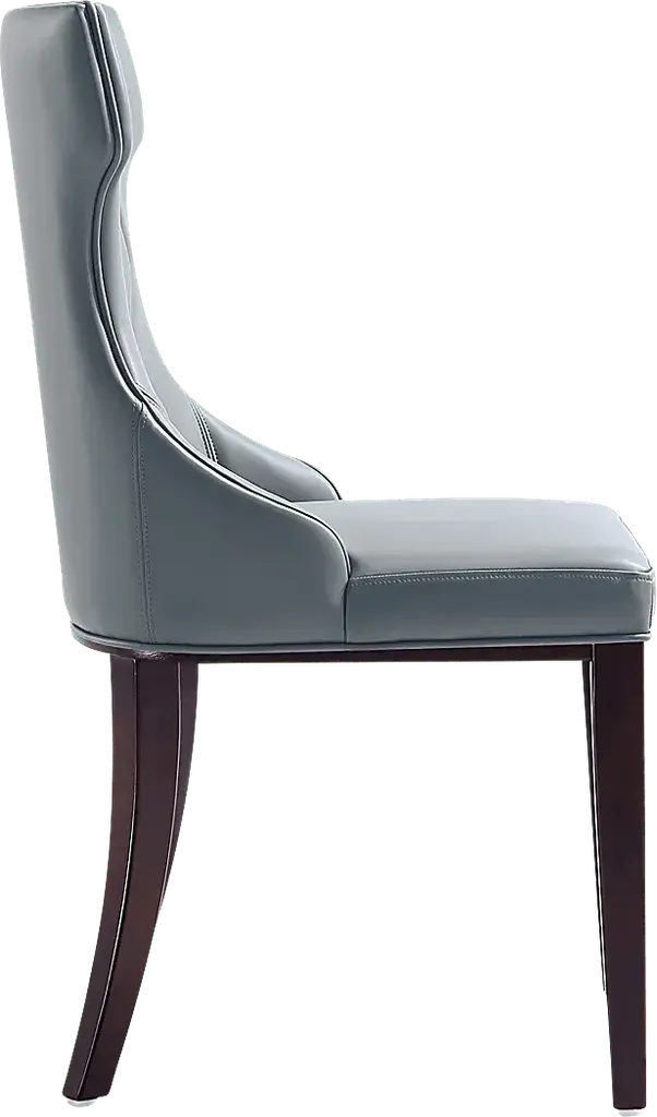 The Worlddale light gray side chair, set of 2 brings the height of modern architecture and elegant style to your dining experience. Luxuriously upholstered, this show stopping piece is soft to the touch. The distinct wing-back seating and rich, walnut stained beech wood legs curve at the back, giving the Worlddale its sophisticated glamor. Ships fully assembled, the Worlddale is sure to be a standout in any decor.