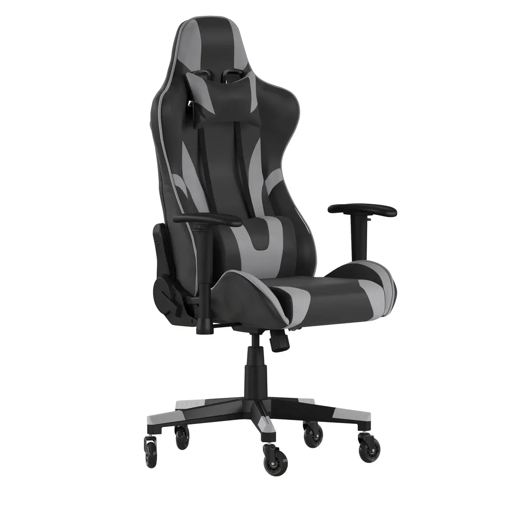 Great style combined with high customization make this ergonomic racing chair a must have to keep up with the demands of your marathon gaming sessions. Your couch may feel comfortable, but you need adequate seating while holding the controller for hours at a time. This high back LeatherSoft upholstered racing style game chair with upgraded, transparent, roller style ball-bearing wheels will outperform your couch with healthier benefits. LeatherSoft is leather and polyurethane for added Softness and Durability. The ergonomic design of this computer chair offers generous padding with a wing style back to cradle your torso. The padded arms provide a comfortable resting position while holding your controller and relieve pressure from your shoulders and neck. If you're playing on your computer and want to get closer to the action the arms flip backward to pull yourself underneath the desk without having to adjust the seat height. The tilt lock mechanism underneath the seat locks in an upright position when you no longer want to lean and rock back. To be considered a true gamer you need a dedicated gaming chair to take your gaming to new heights, whether you have followers who watch you on a streaming service or like to interact with other gamers online.