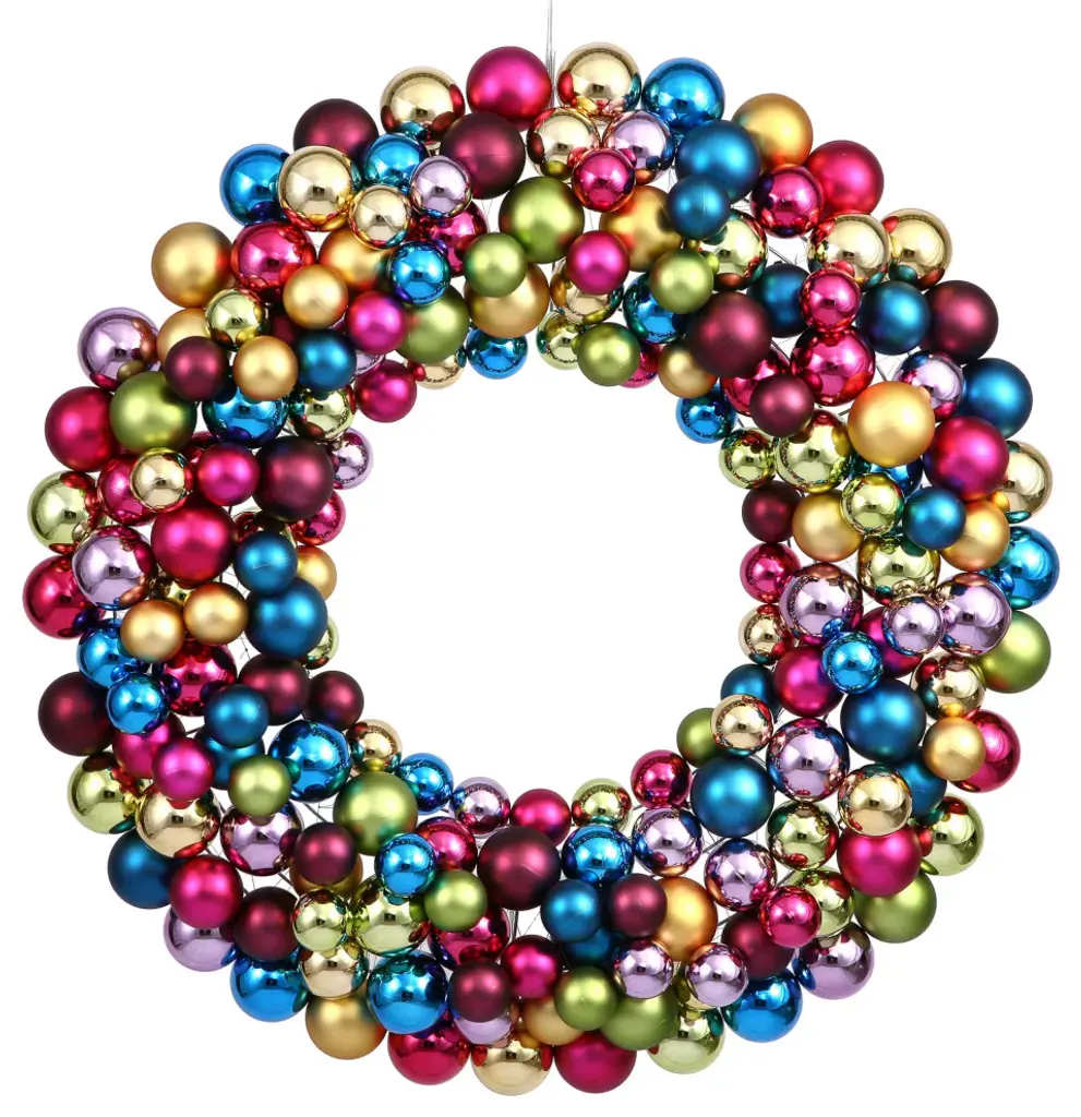 12" Multi Colored Ball WreathVickerman 12" Multi-Colored Shiny and Matte Ball WreathLight Color: UnlitColor: MulticolorProduct Dimensions (W x D x h): 12 x 3 x 12