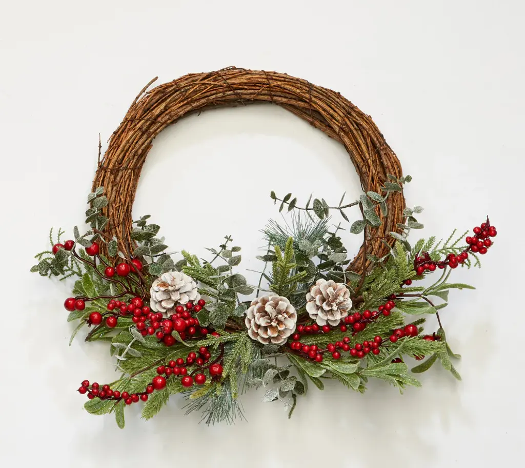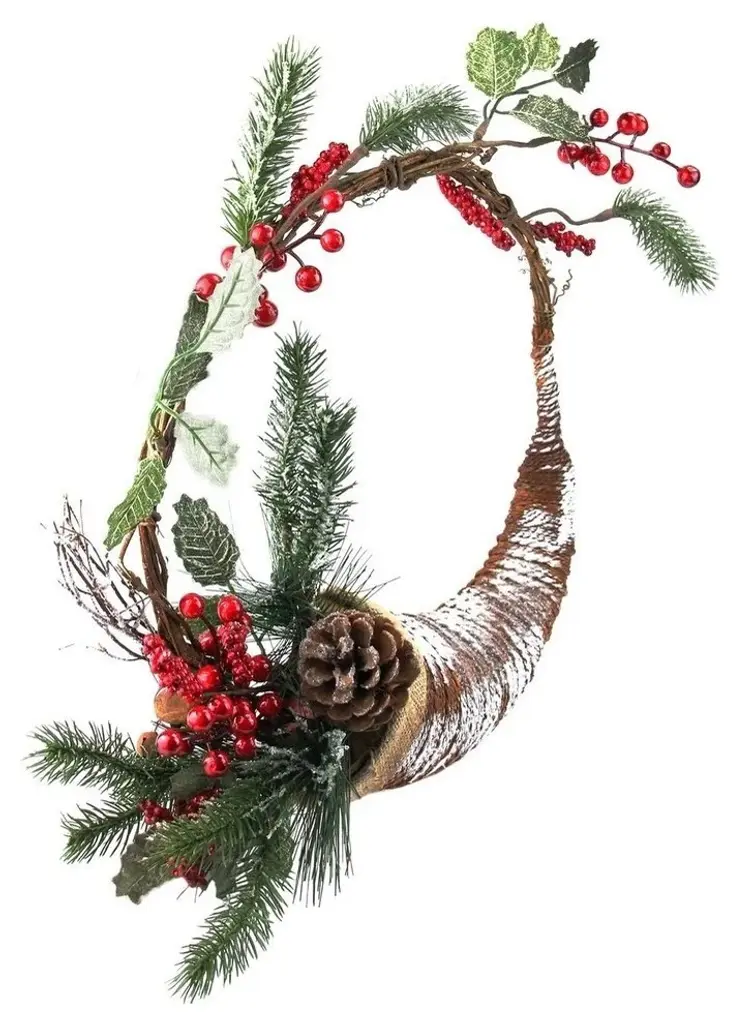 14" Cornucopia Christmas Wreath With Berries And Pine Cones