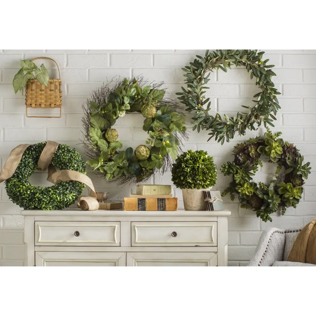 Hang this lovely faux foliage wreath above your entryway console to set an inviting scene, or display it above the mantel for a touch of cottage charm.