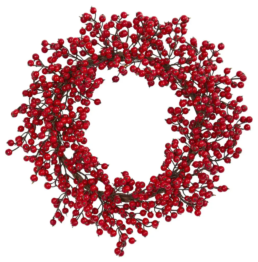 16" Artificial Red Berry Christmas Wreath On Natural Twig Base