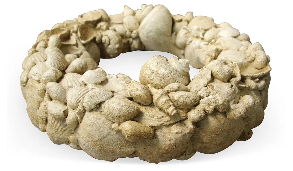 Inspired by the sea, this fiberstone shell wreath will add a charming touch to any outdoor space.