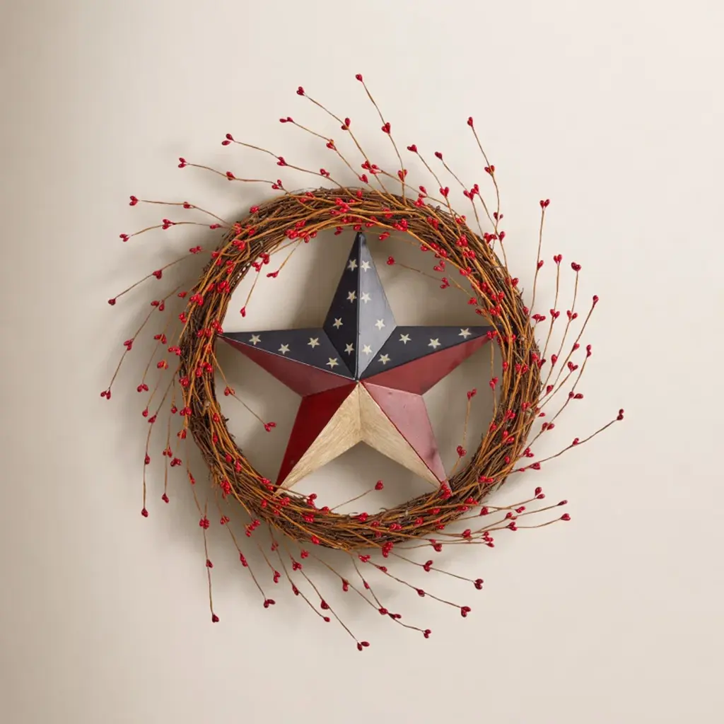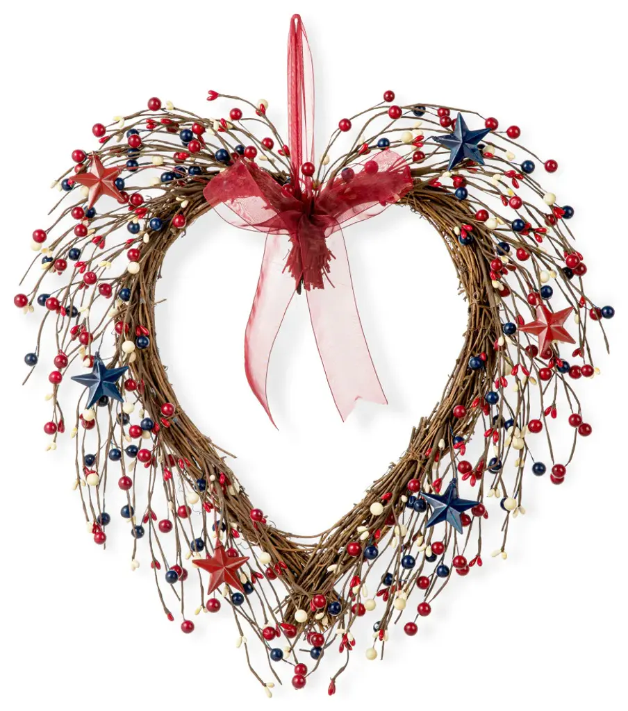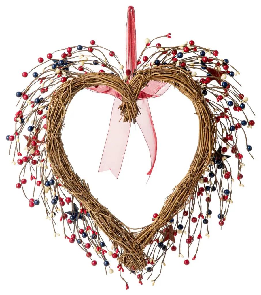 "Bring lovely seasonal design to your home using this Berry Heart Wreath. The heart-shaped features an artificial arrangement of roundness and heart-shaped berries. Complete with charming addition such as red ribbons, it''s a wonderful touch to your Patriotic Day.1. Material: 60% Foam, 30% Rattan, 5% Paper, 5% Iron2. Size: 16''''LX2''''WX17''''H 3. Handcrafted"
