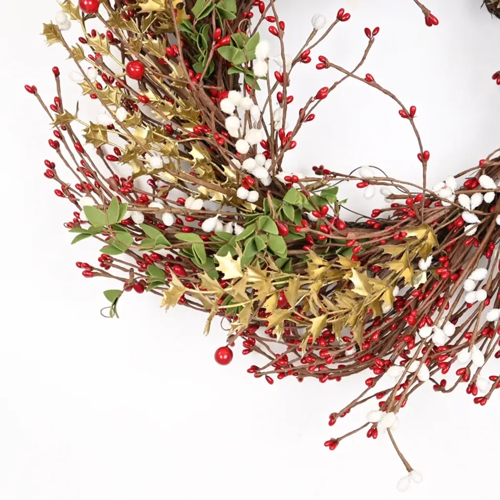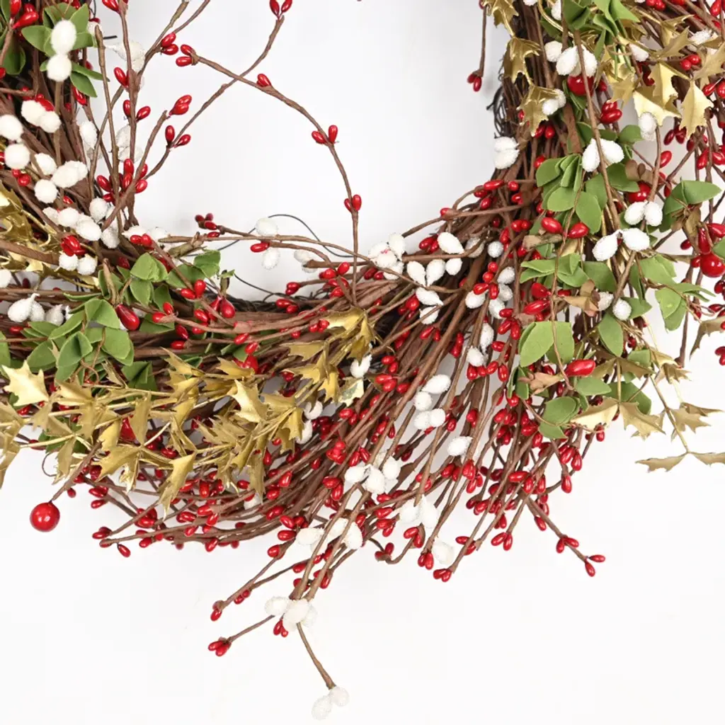 18" Artificial Farmhouse Grapevine Twig Mini Eucalyptus Berry Pip Christmas Day Winter Wreath For Front Door