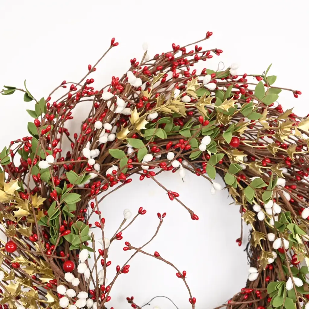 Add a touch of festive charm to your home with the Artificial Farmhouse Grapevine Twig Mini Eucalyptus Berry Pip Christmas Day Winter Wreath for Front Door. This beautifully crafted wreath features a natural grapevine base intertwined with mini grapevine twigs, accented by vibrant red and white berries and delicate eucalyptus leaves. Perfect for creating a warm and inviting atmosphere during fall, Thanksgiving, or Christmas, this versatile piece can be used as-is or customized with your unique touch. Effortless to maintain, it’s the ideal decoration for holiday parties and seasonal celebrations.