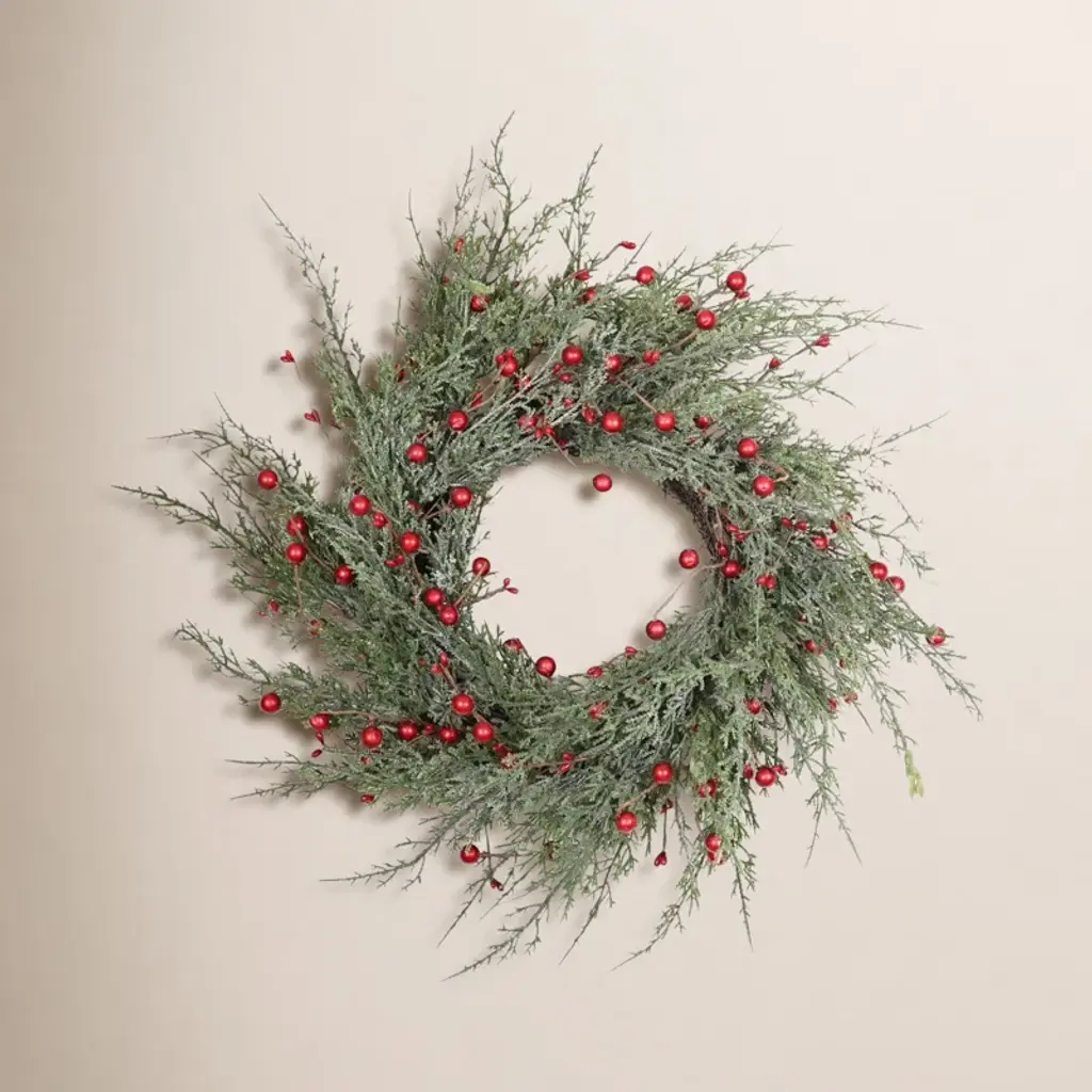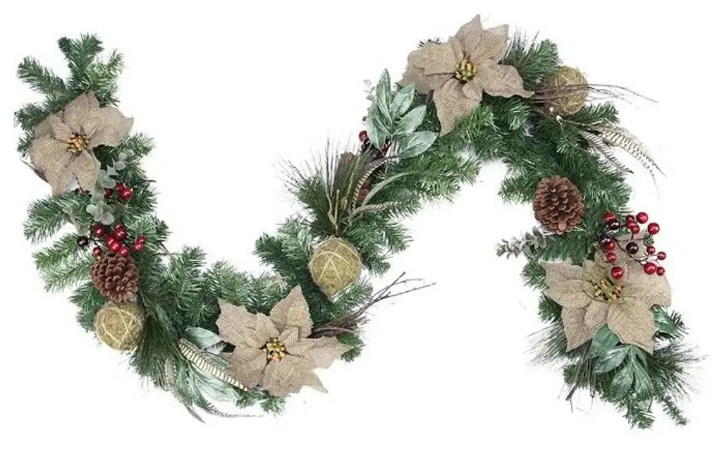 Decorative rattan wreath features a unique wrapped burlap design and is accented with holographic sliver glitter and red berriesProduct features:Pre-lit with 20 clear lightsBulb size: Mini73" white lead cordAdditional Product Features:UL listed for indoor or outdoor useIf one bulb burns out the rest will stay litContains 1 plug with end connector which allows you to stack multiple lighted items together (not to exceed 210 watts)No assembly required - wreath comes in 1 pieceIncludes a metal ring frame backing with a hook for hangingIncludes replacement bulbs and spare fusesWire gauge: 22120 volt 60 hertz, 0.08 amps, 9.6 wattsDimensions: 18" diameter (measured from outermost edge to the opposite side''s outermost edge)Material(s): Rattan/metal/burlap/plastic/glass bulbs/wire