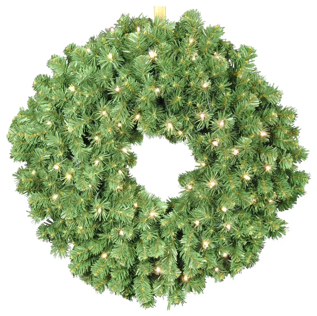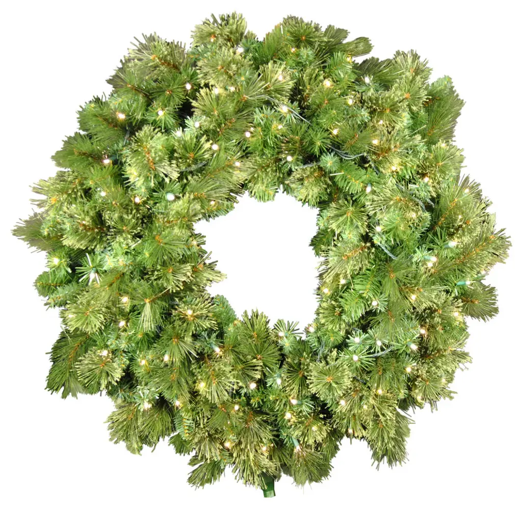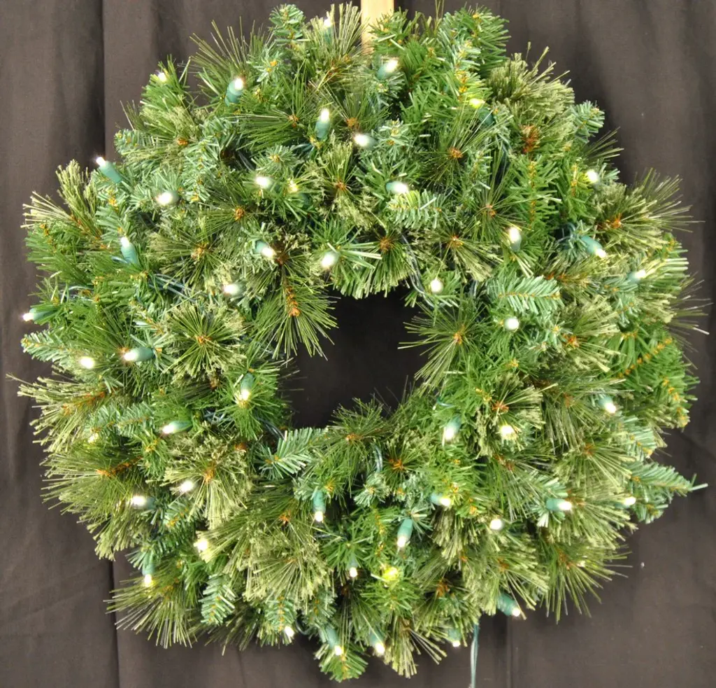2'' Blended Pine Wreath Pre-Lit With Warm White LedsThe incredible mix blend 24wreath is artfully crafted with 4 different pine tips including Long Needle, Fir, Douglas and Sequoia tips. Creating the utmost realism and eye catching appeal, neighbors and customers will love this wreath for years to come. Lit with 70 LED Warm White lights. Add ornaments for your own personal touch.