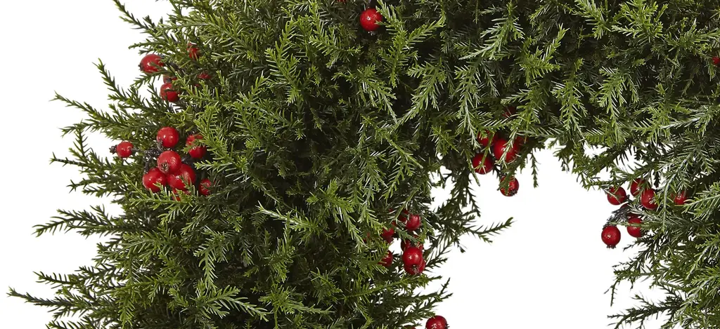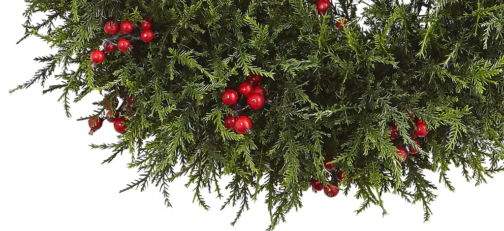 The perfect look for the holidays whether it's in your home or office, this lovely cedar berry wreath will be a favorite year after year. With soft green cedar pointing in every direction, accented by lush-looking berries, it's the ideal size for almost any area. The best part is it'll always look fresh, meaning it'll be used year after year. It also makes a great gift for those that love holiday d_cor.