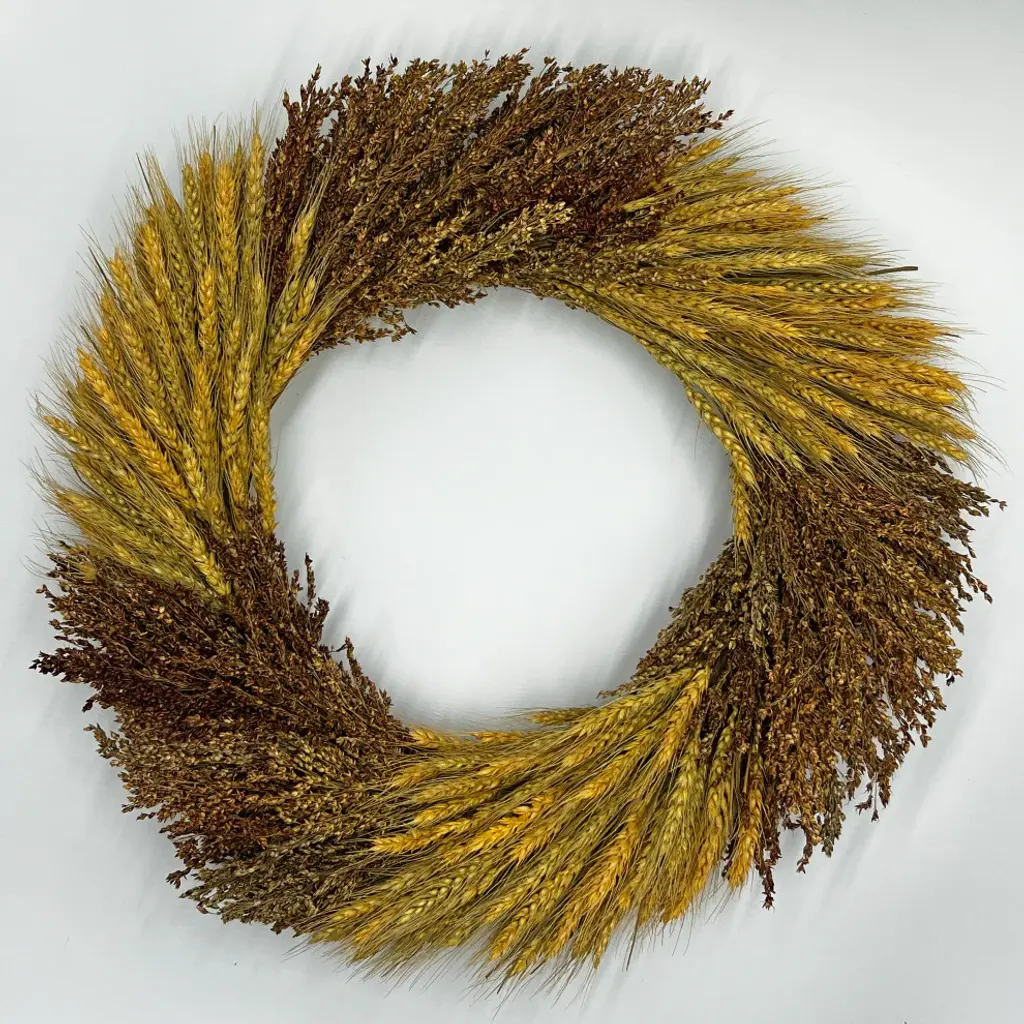 21" Preserved Wheat With Preserved Wheat Leaf Wreath, Brown, Wheat