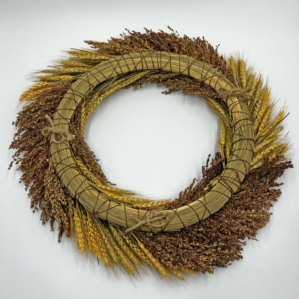 Preserved Wheat Leaf Wreath 21 in., a real plant that will last and has been preserved, making it a timeless addition to your home decor. This wreath combines the classic beauty of preserved wheat leaf, creating a sophisticated and enduring statement piece. Meticulously crafted, the wreath features preserved wheat that maintain their lush greenery and natural charm. The preservation process ensures longevity, allowing you to enjoy the rich, evergreen aesthetics of this wreath for an extended period. Note: These authentic plants have been carefully preserved, showcasing subtle variations in color and texture that enhance the distinctive charm of each arrangement. Please ensure that water and moisture are kept away from this product. Avoid exposing it to direct Sunlight
