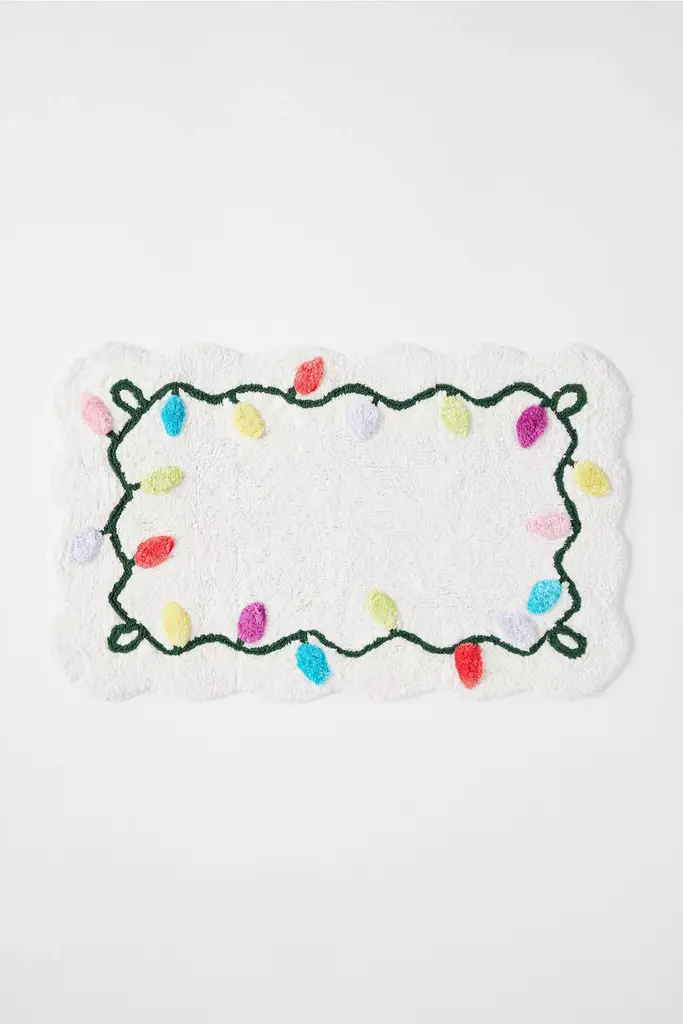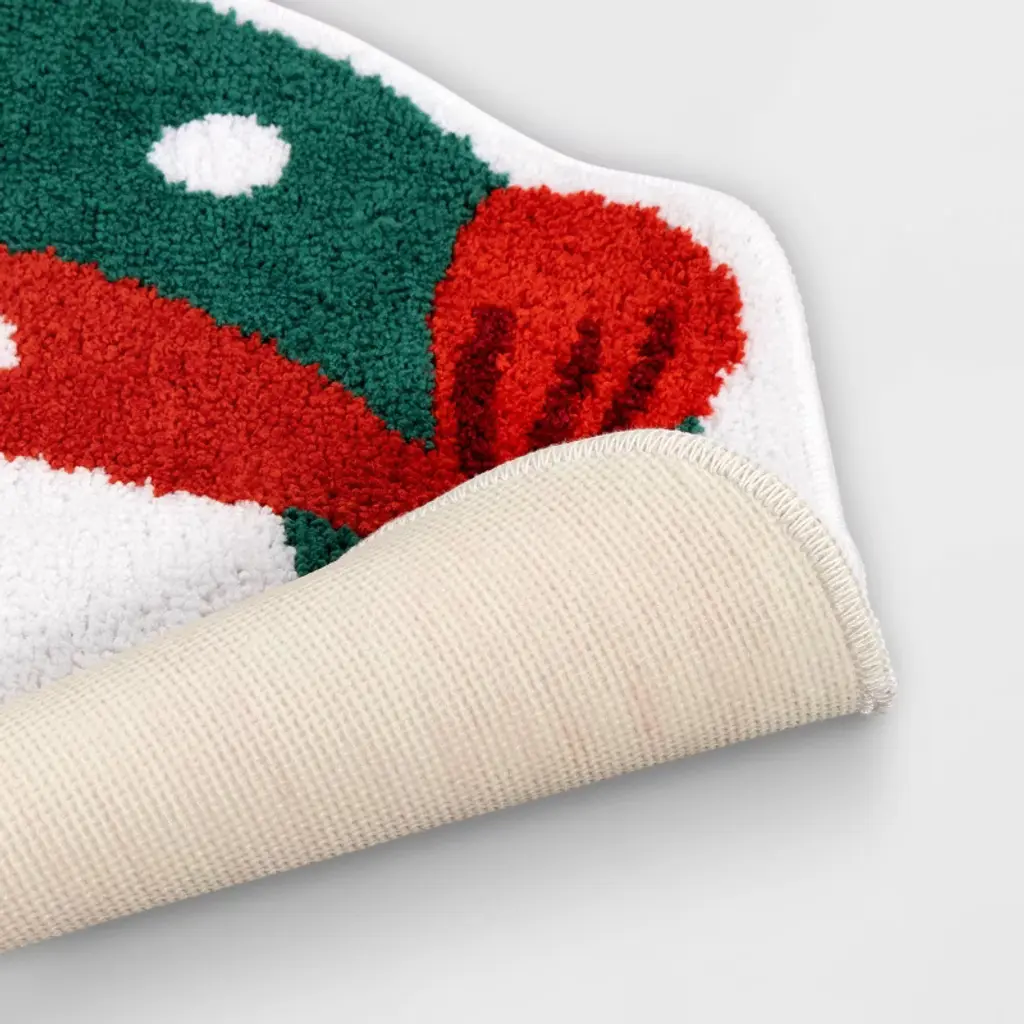 Elevate the festive ambiance of your bathroom with the Wreath Christmas Bath Rug from Wondershop™. This knitted bath rug is crafted from midweight polyester fabric to provide soft underfoot comfort as you step out of the bath, while the latex backing helps keep it in place. Designed in a wreath shape in white and green hues, you can place the circular rug by the tub or in front of the sink to enjoy plush comfort as you go through your daily routine.Welcome to the Wondershop™.