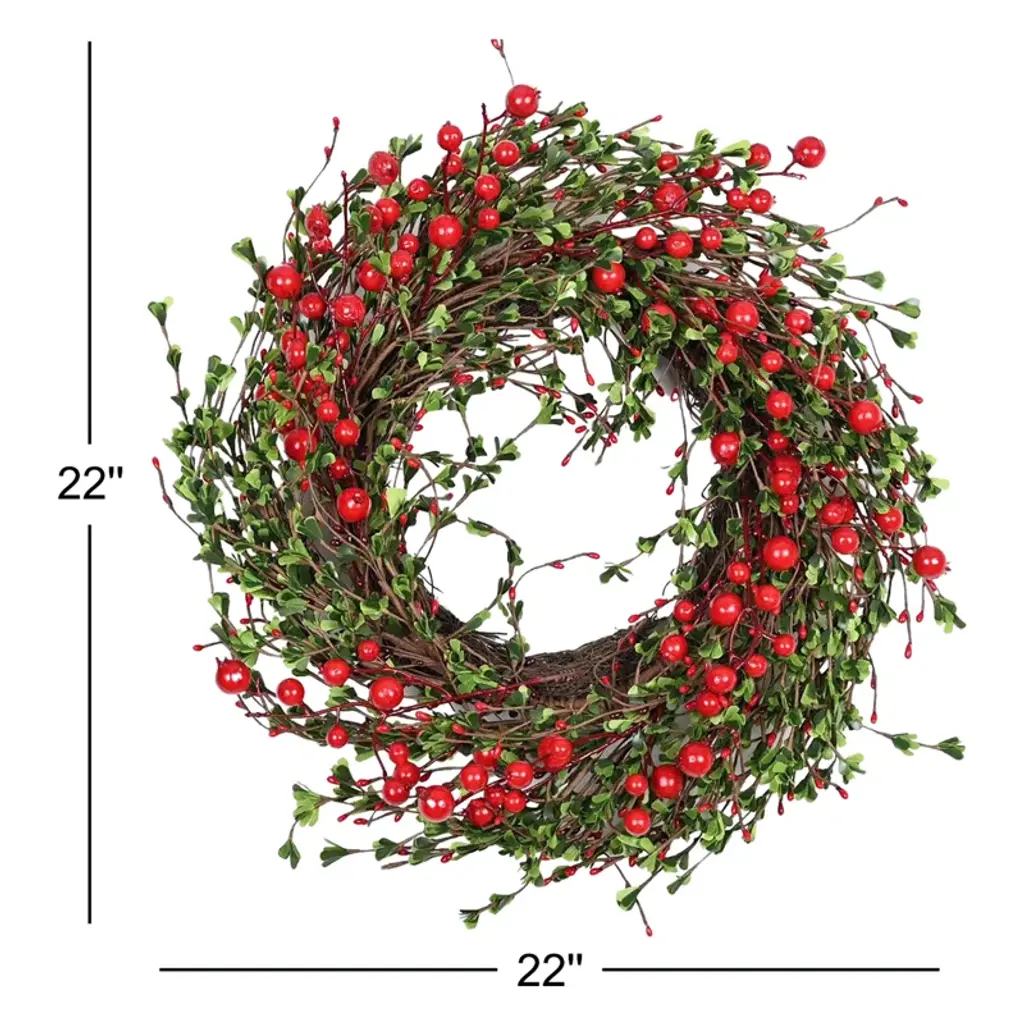 22" Farmhouse Artificial Foliage Grapevine Berry Fall Winter Front Door Wreath For Christmas