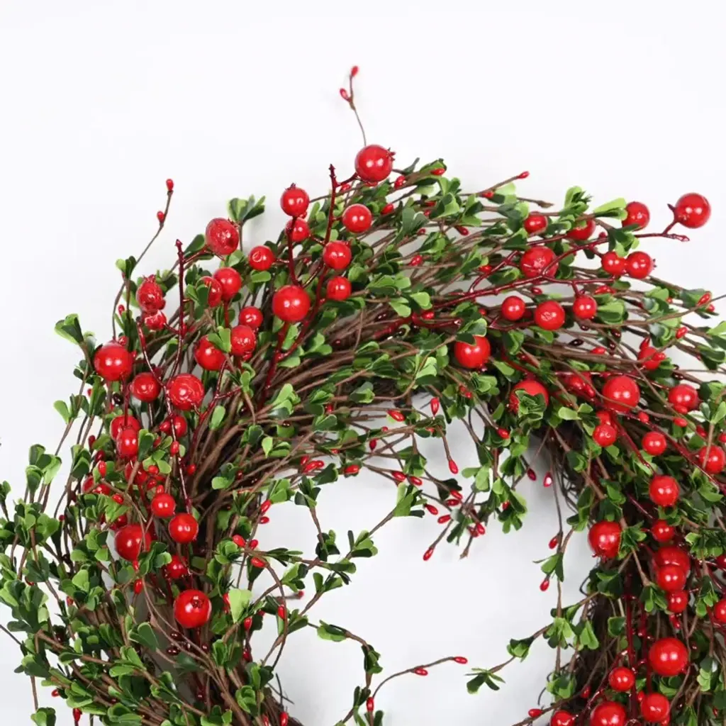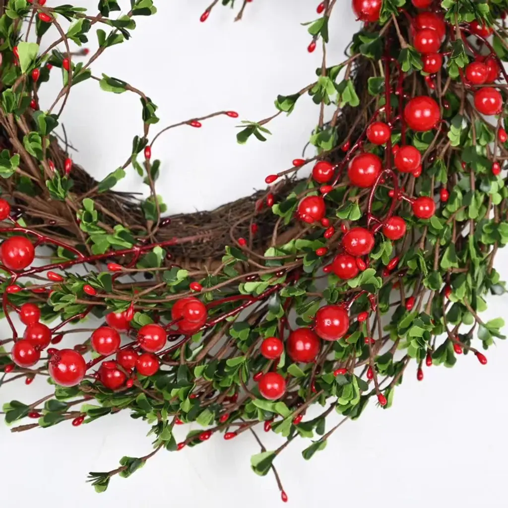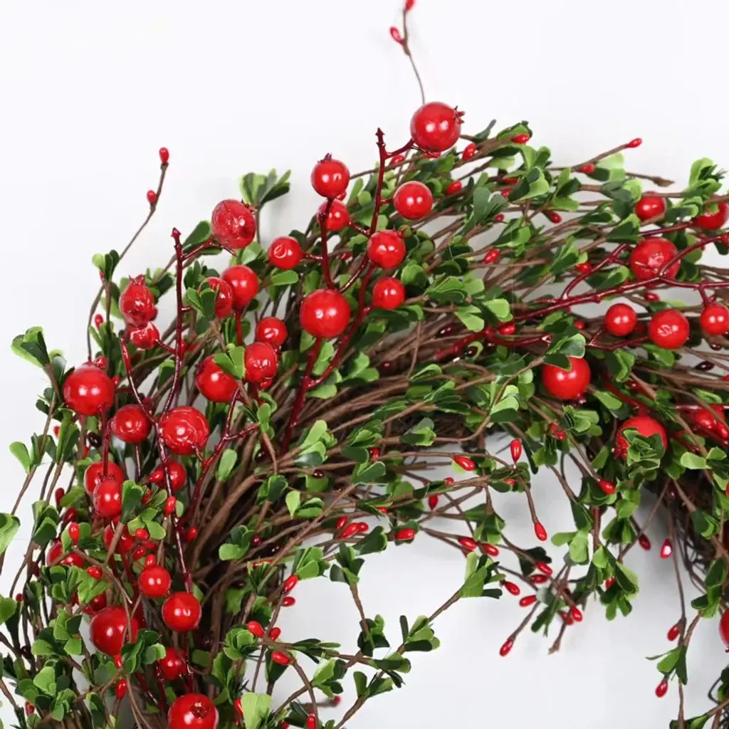 Create a festive atmosphere with the Farmhouse Artificial Foliage Grapevine Berry Fall Winter Front Door Wreath for Christmas. Built on a rustic twig base, this wreath features an abundance of green foliage and vibrant red berries, perfect for bringing holiday charm to your home. Whether for Christmas, New Year’s, or seasonal parties, this wreath adds a cozy farmhouse vibe. Made from high-quality materials, it is easy to maintain and will keep its beauty throughout the fall and winter seasons.