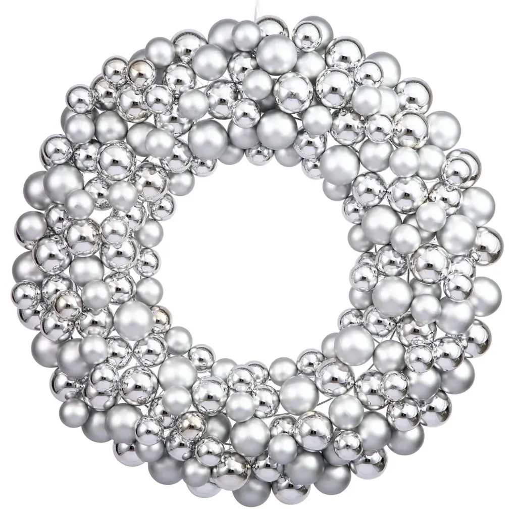 22" Silver Colored Ball WreathVickerman 22" Silver Shiny and Matte Ball WreathLight Color: UnlitColor: SilverProduct Dimensions (W x D x h): 24 x 3 x 24