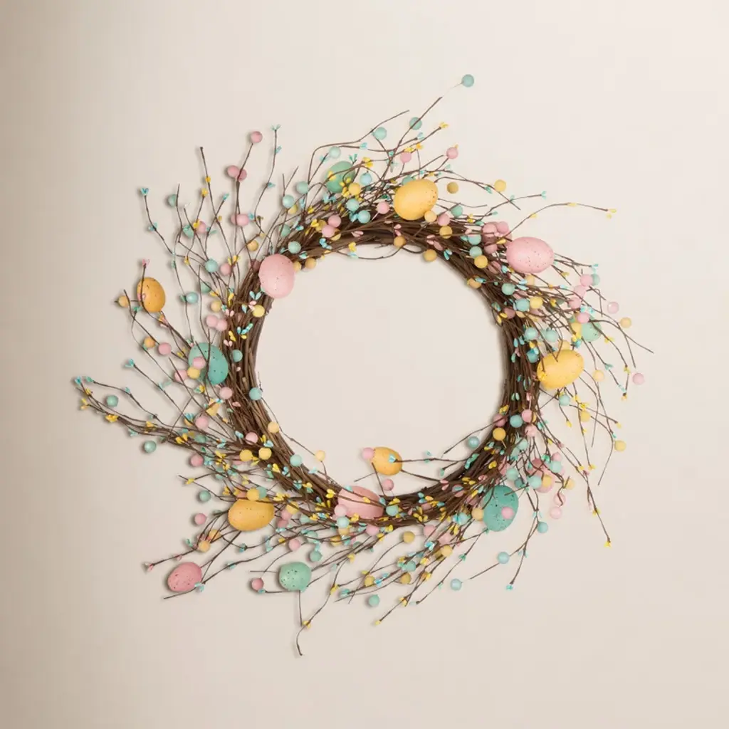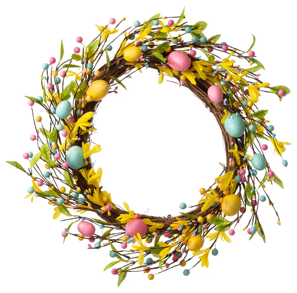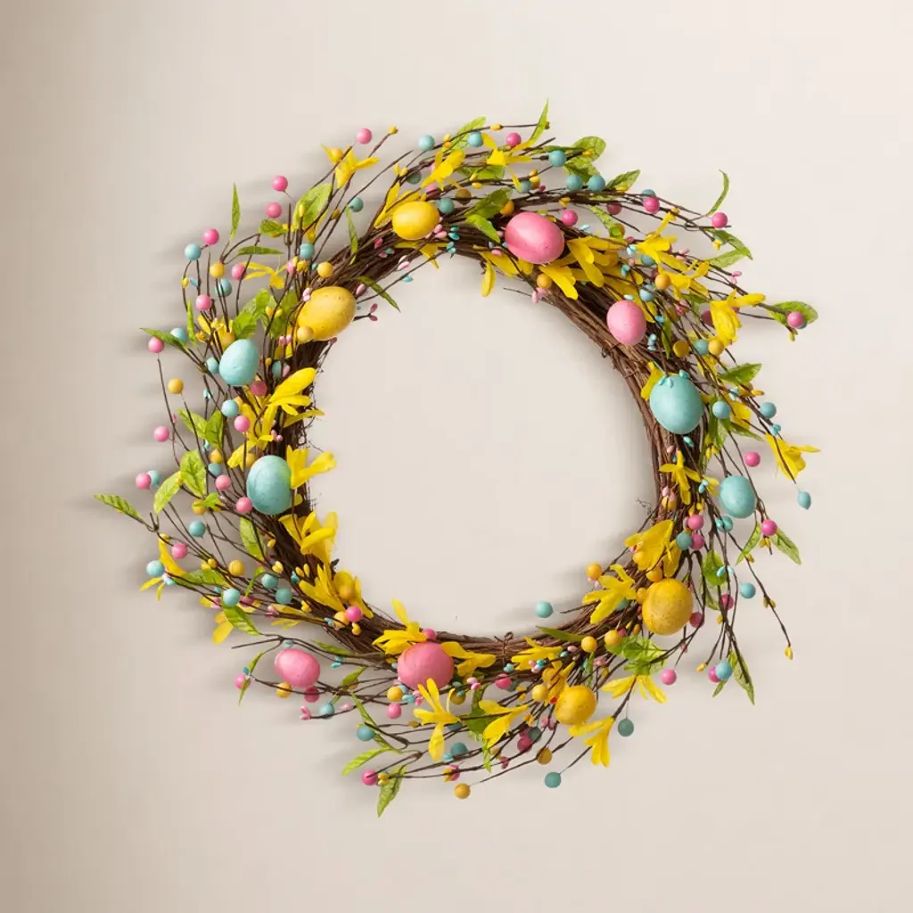 1. The Colorful Egg Wreath transform your bland front door into a vibrant, attractive entryway that welcomes your closest family and friends into your home all spring long, not just for Easter2. If you are looking for that special wreath to transform your front door seasonal decor, this is the wreath for you3. Display this completed wreath off of a door or wall for a charming Easter theme4. Multi-ful Color5. For indoor use or covered porch