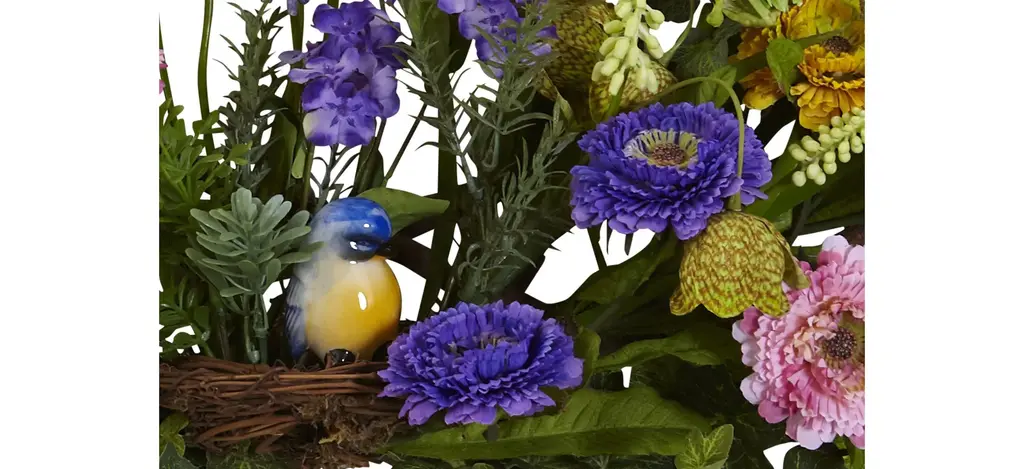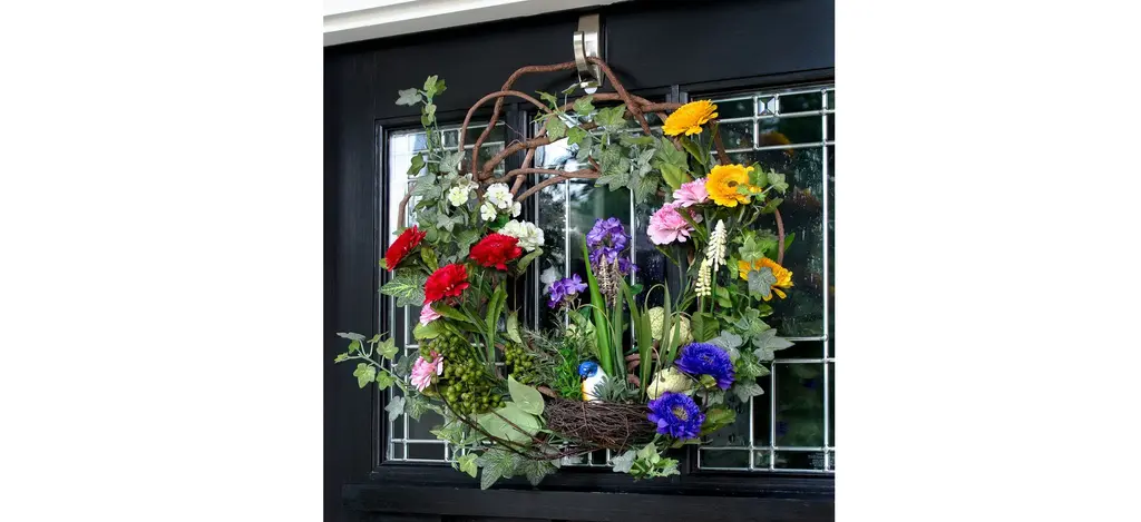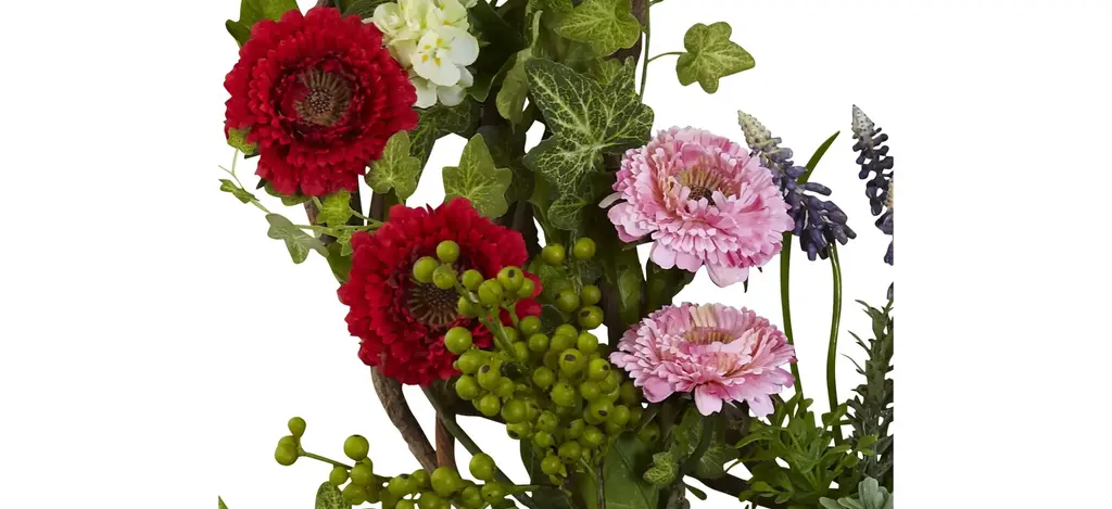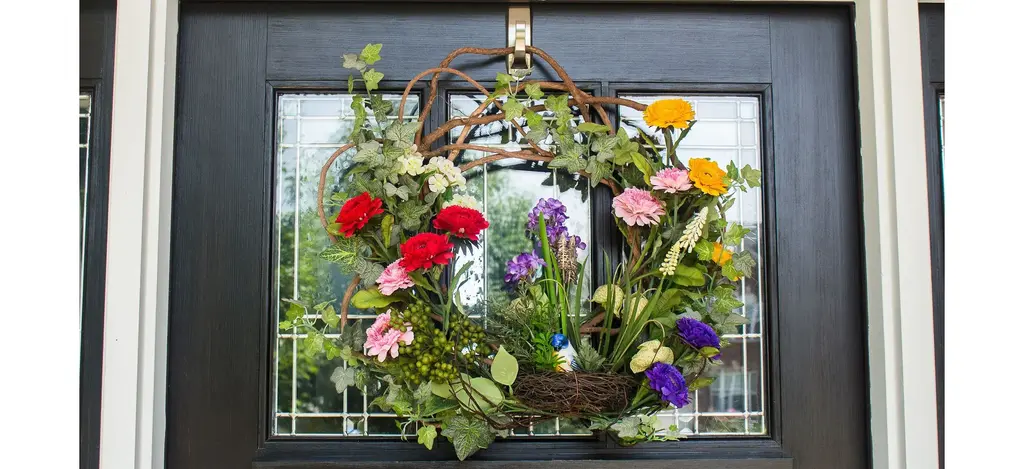 Make any door or entryway into a thing of beauty with this Spring Floral Wreath. A broad spectrum of splashy colors frames the delicate circle of branches, making this wreath a joy to truly behold.