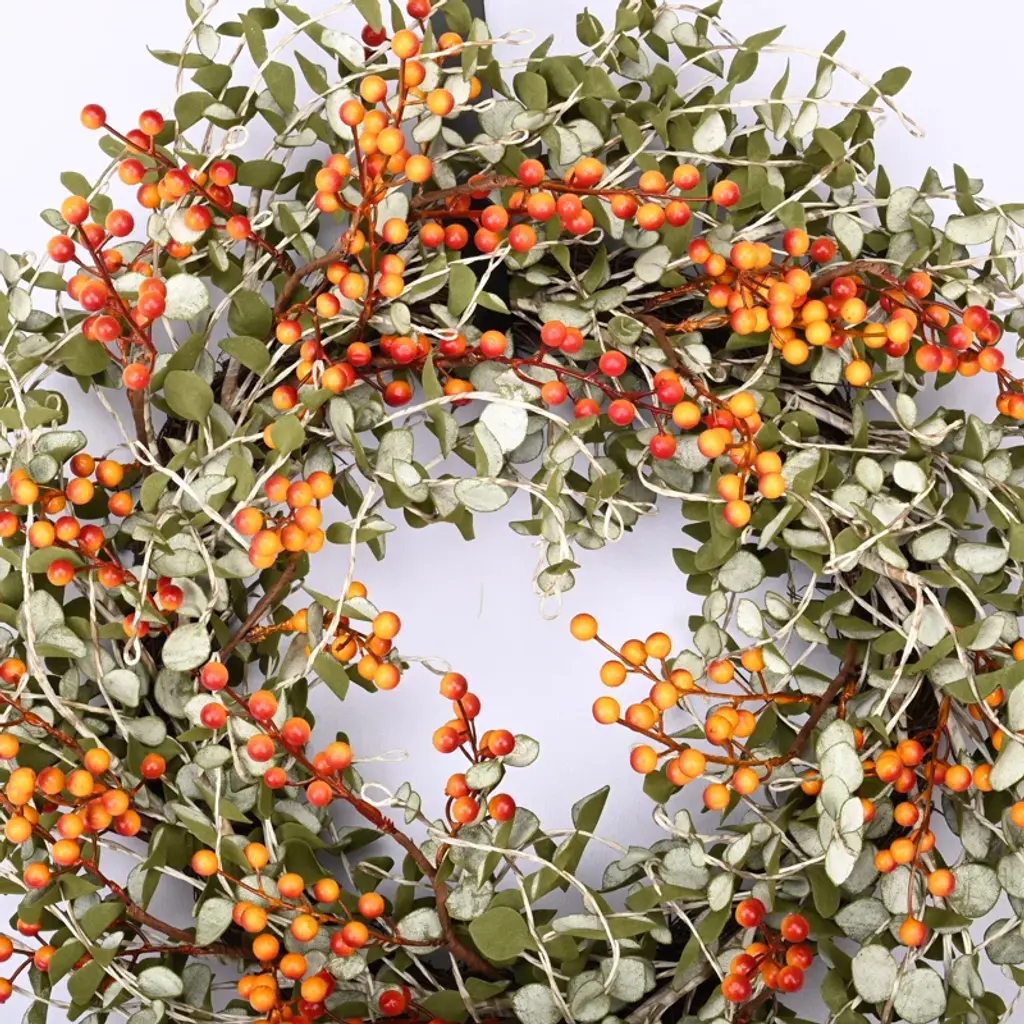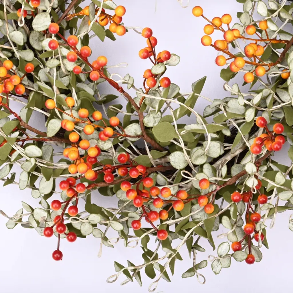 24" Artificial Eucalyptus Berry Thanksgiving Fall Front Door Wreath