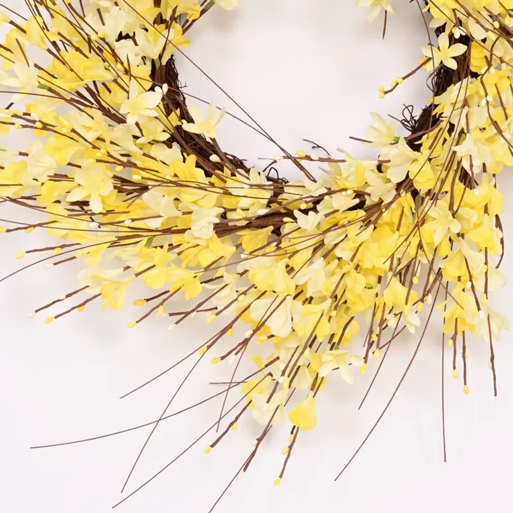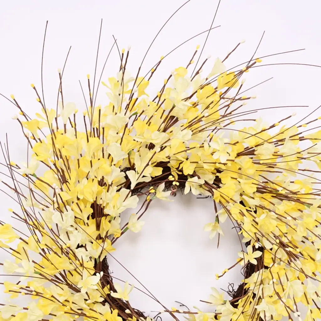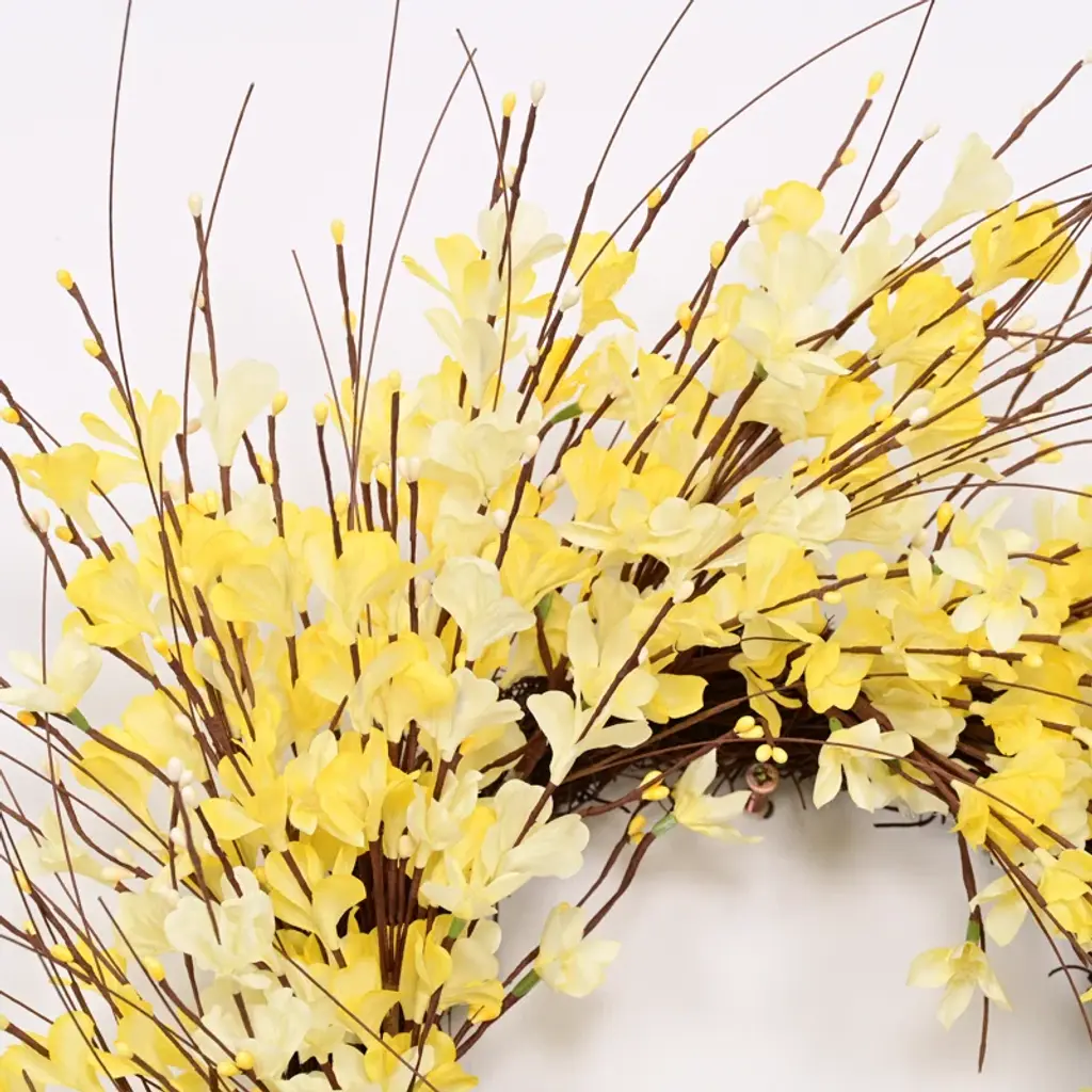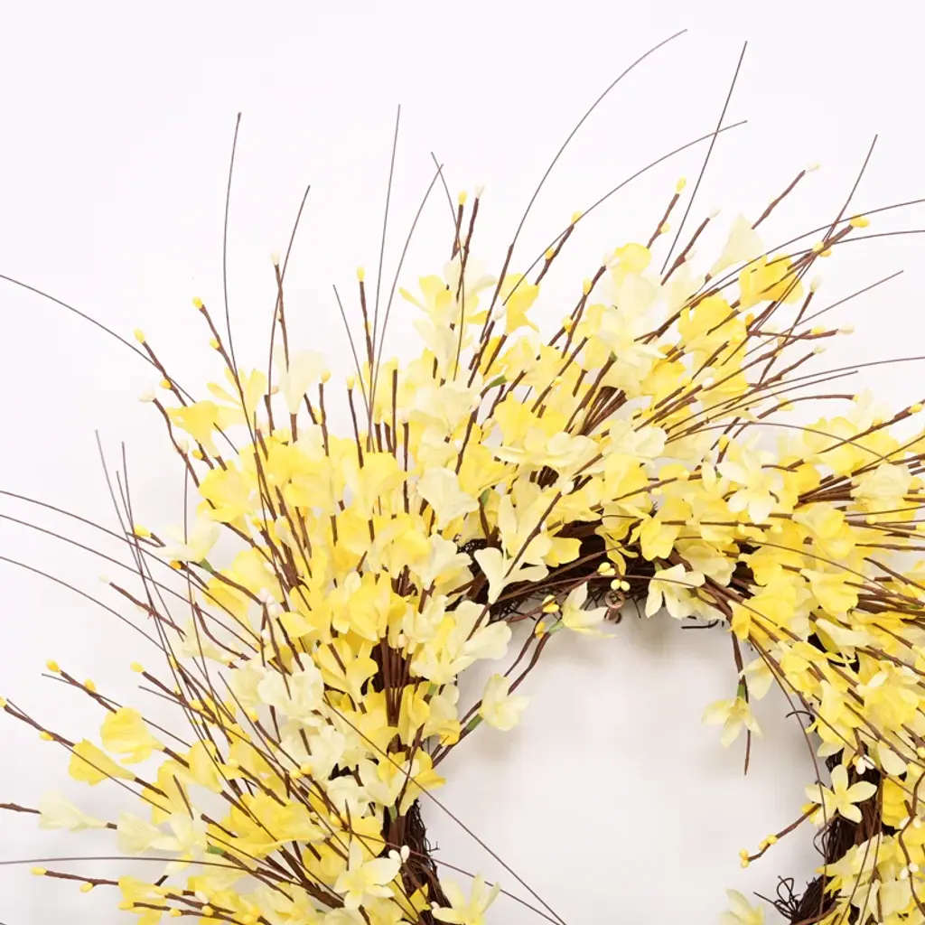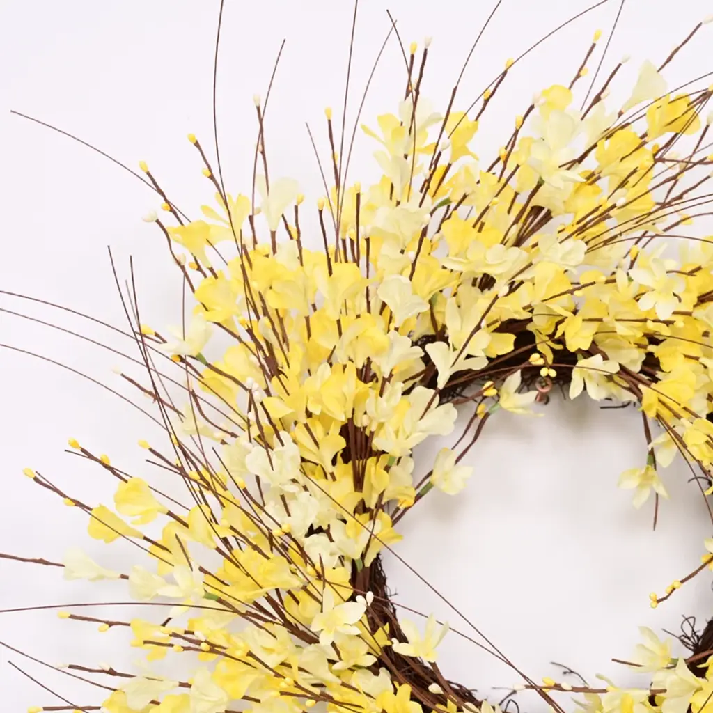 Add a touch of natural beauty to your home with this Artificial Farmhouse Twig Wildflower Blossoms Cluster Floral Wreath. This stunning wreath features a vibrant mix of yellow wildflowers and rustic twigs, creating a charming and welcoming atmosphere for any occasion. Whether celebrating a festive gathering or simply brightening your door year-round, this versatile wreath is perfect for all seasons. Easy to maintain and designed for lasting beauty, it brings a joyful, festive vibe to any home.