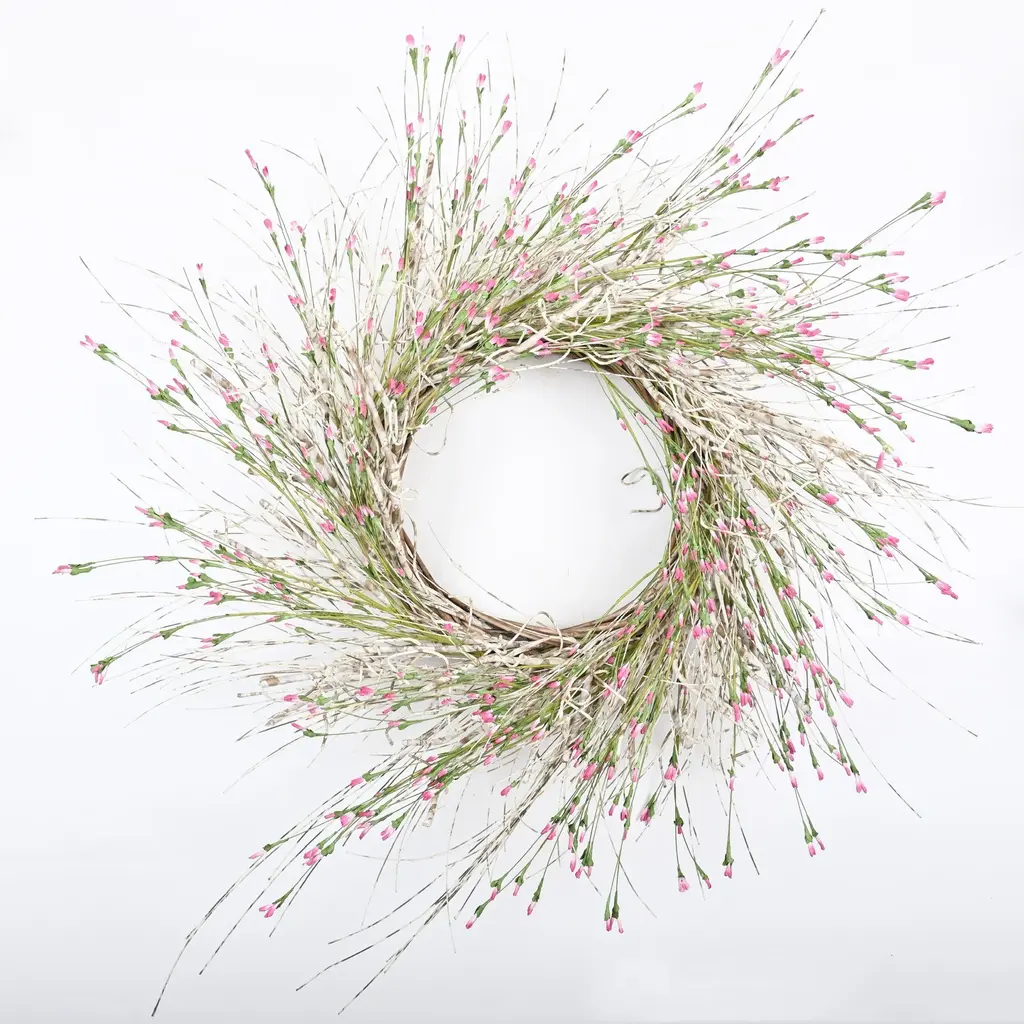 24" Artificial Farmhouse Twig Wildflower Blossoms Cluster Floral Wreath For Front Door