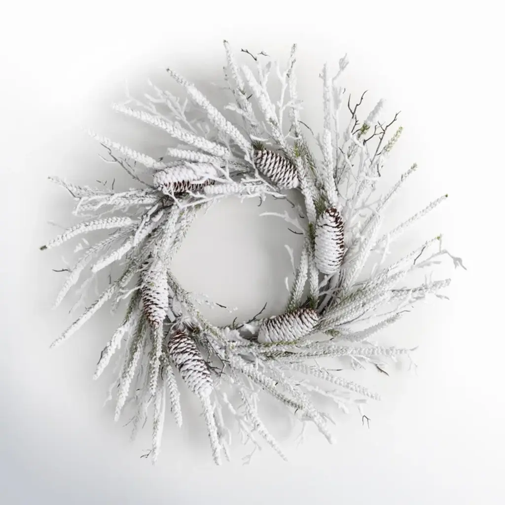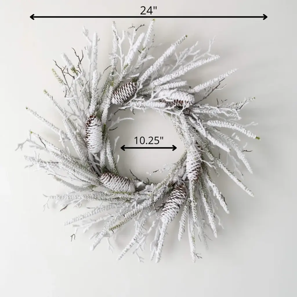 24" Artificial Flocked Pine Twig Christmas Wreath, White