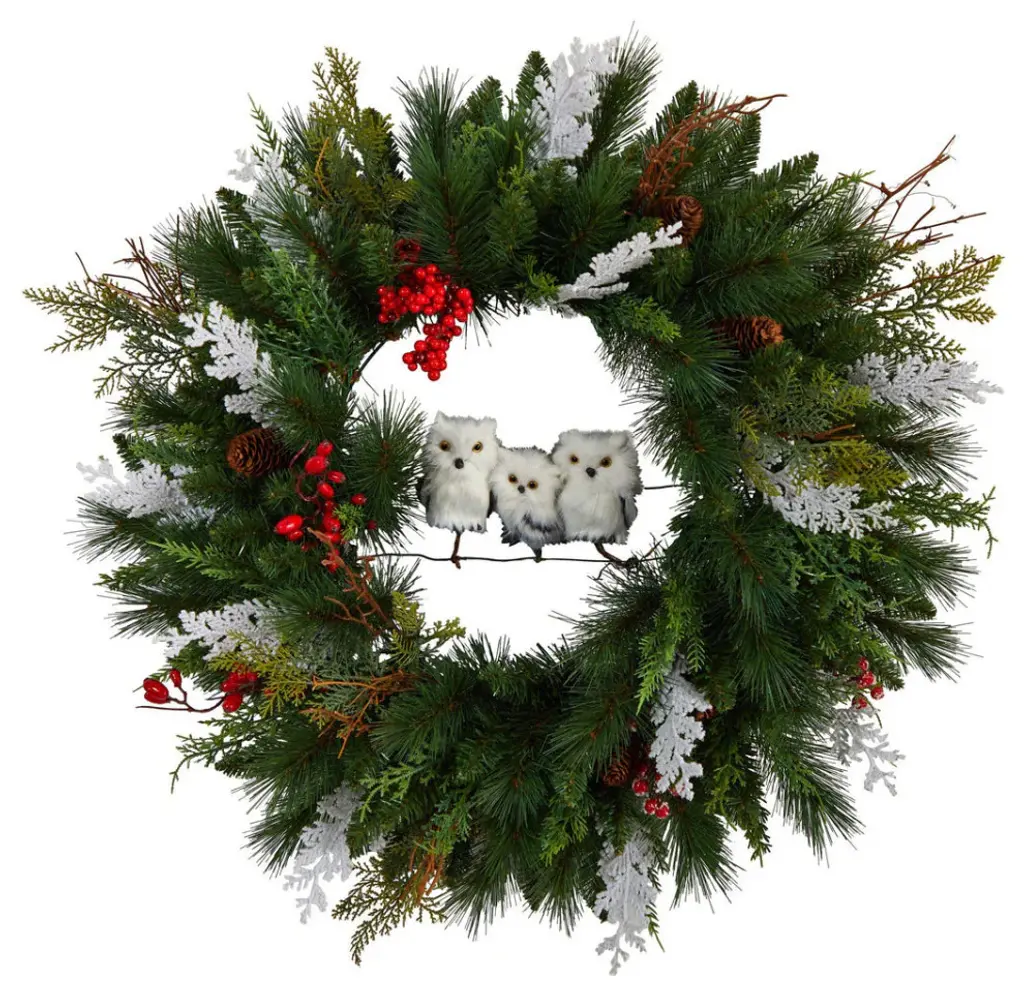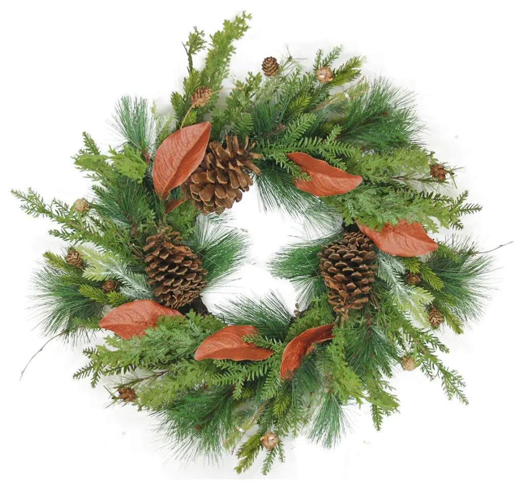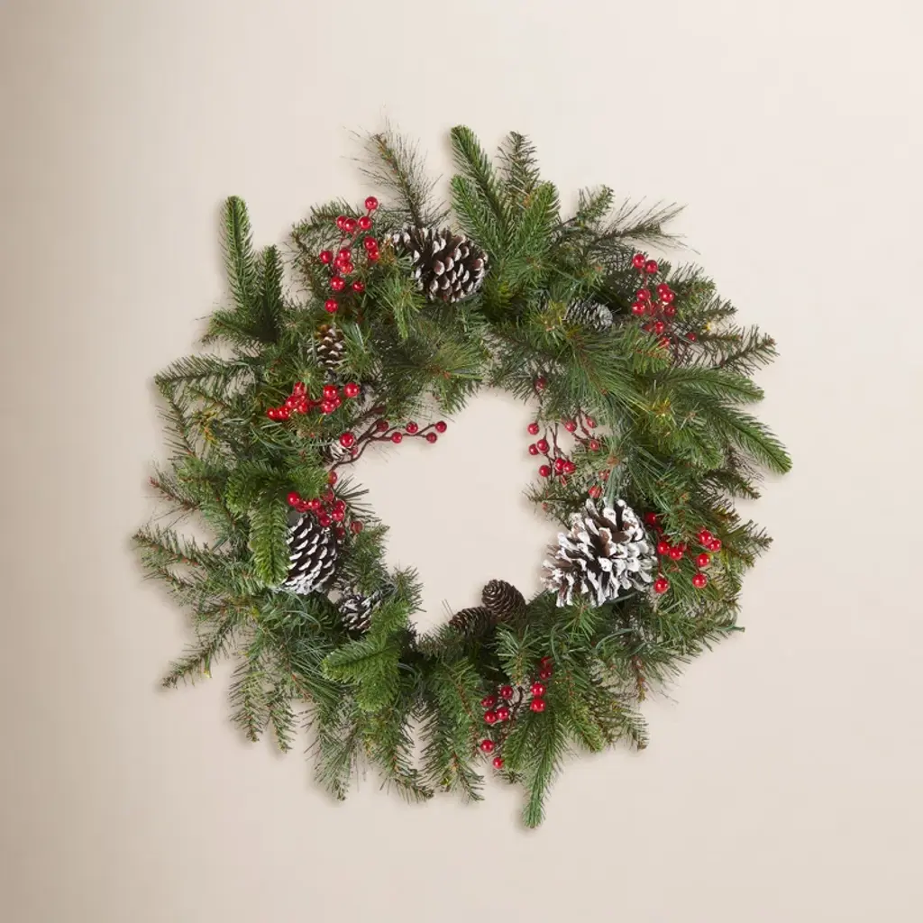 24" Artificial Mixed Pine With Blueberries Pine Cones And Ice Twigs Wreath