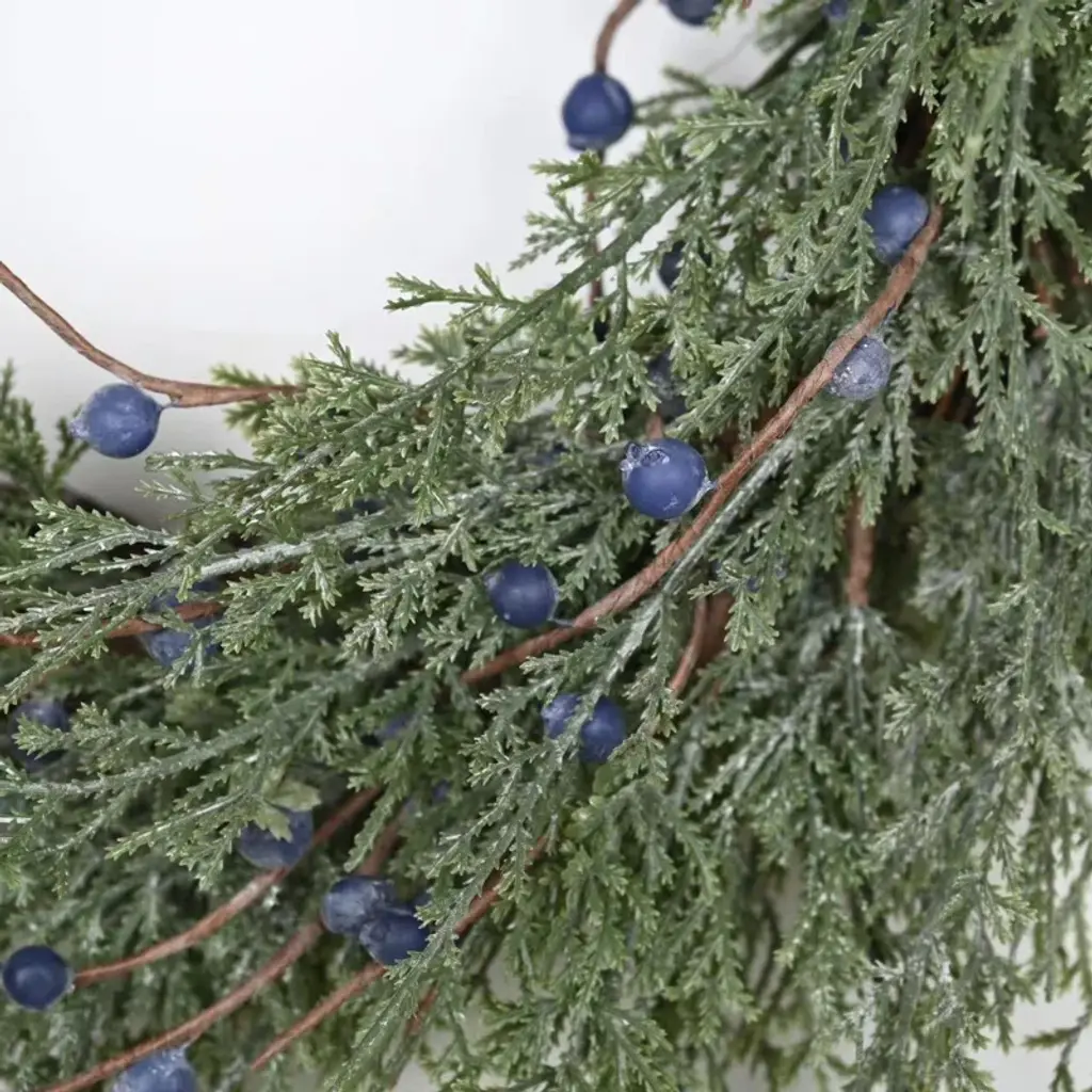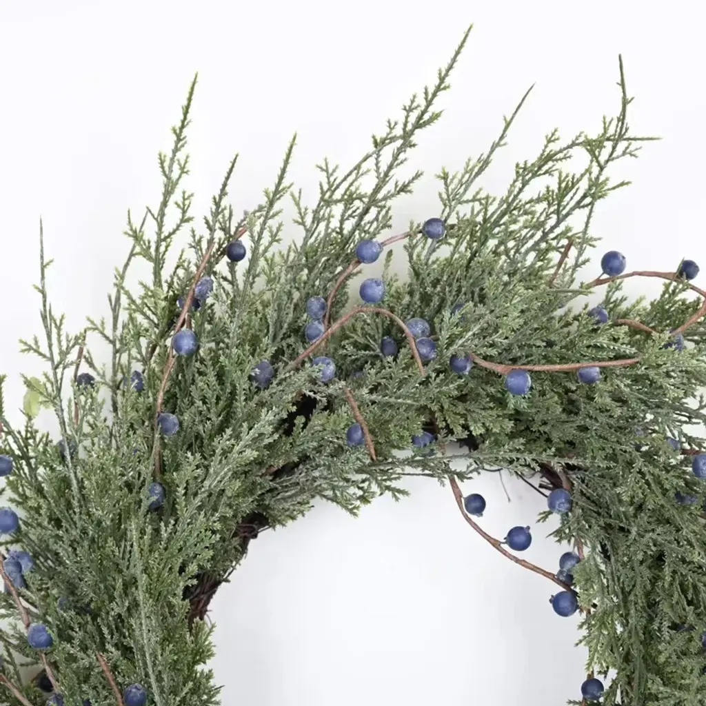 Embrace the festive spirit of the season with this Artificial Winter Christmas Cypress Berry Wreath for Front Door. Featuring lifelike cypress branches and vibrant berry accents, all set on a sturdy grapevine base, this wreath is the perfect addition to your holiday decor. Ideal for creating a warm and inviting atmosphere, it brings a touch of winter wonder to any space.