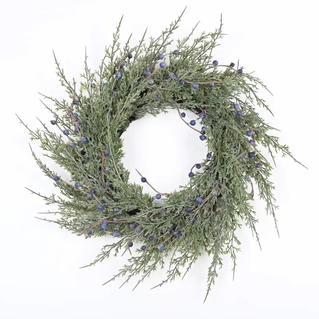 24" Artificial Winter Christmas Cypress Berry Wreath For Front Door