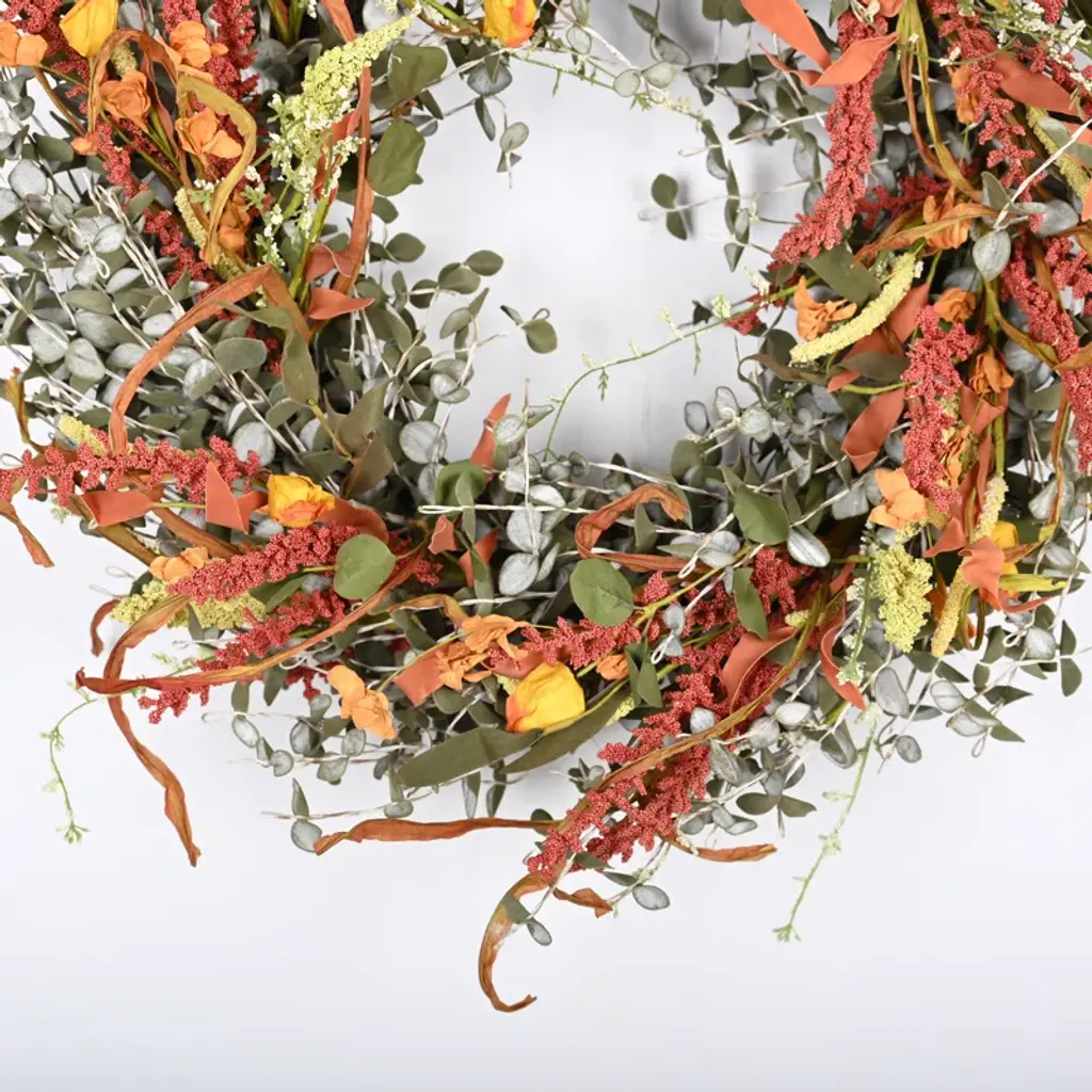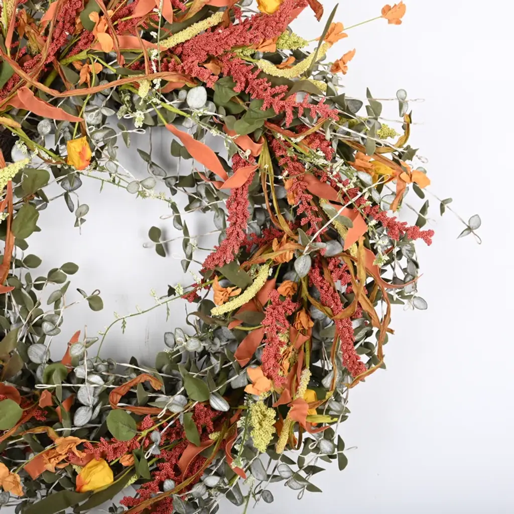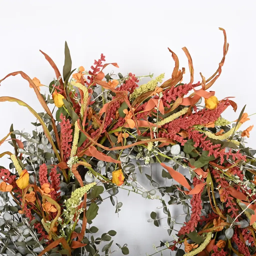 Enhance your home’s seasonal charm with the Farmhouse Artificial Eucalyptus Berry Fall Front Door Wreath for Thanksgiving Day. This beautiful wreath features an abundance of realistic eucalyptus leaves, artfully paired with vibrant orange berries, bringing a touch of autumn elegance to your front door or indoor spaces. Perfect for Thanksgiving celebrations and fall gatherings, this wreath creates a warm and inviting atmosphere. Crafted from high-quality materials, it is designed for easy maintenance, allowing you to enjoy its beauty throughout the autumn season.