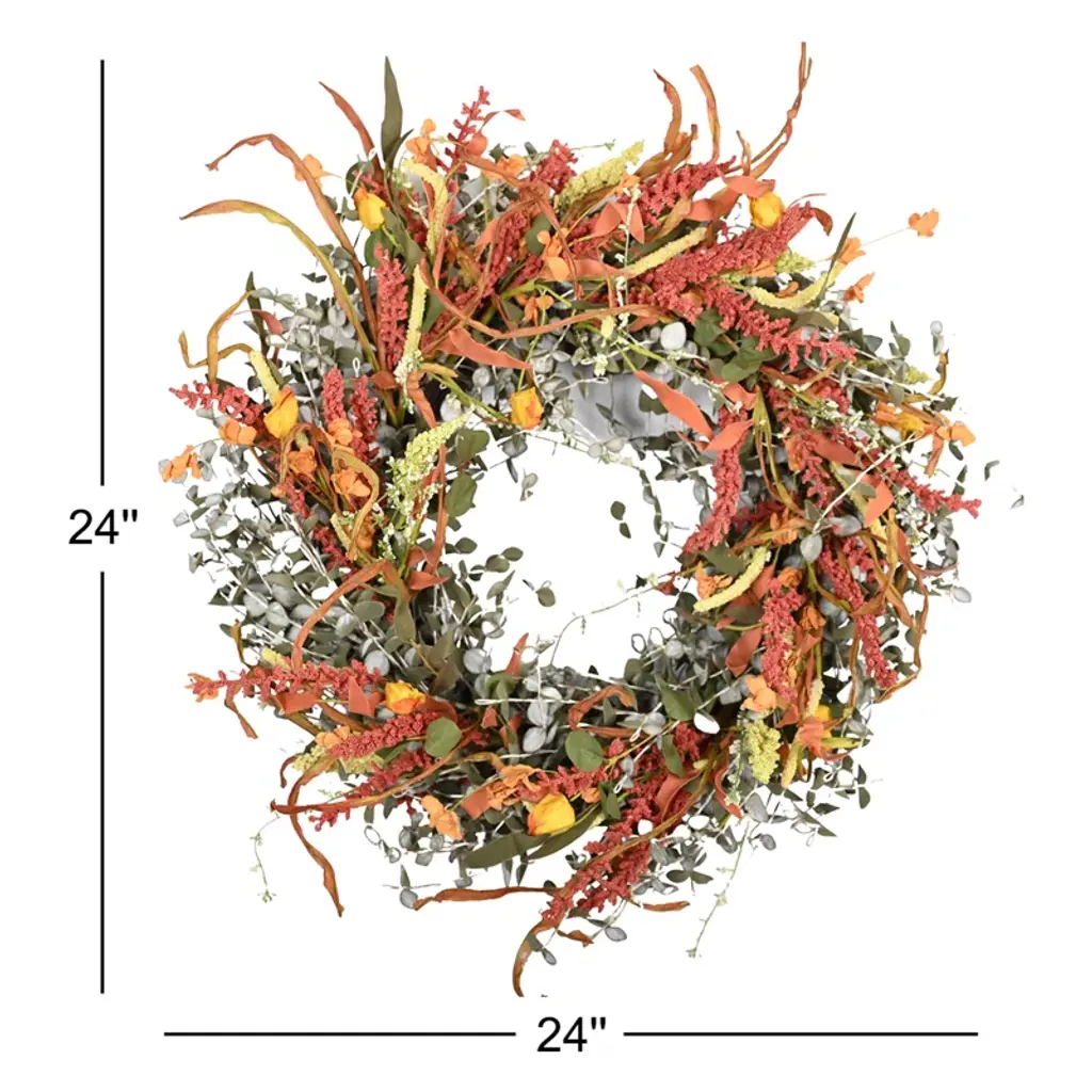 24" Farmhouse Artificial Eucalyptus Berry Fall Front Door Wreath For Thanksgiving Day