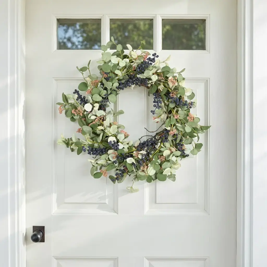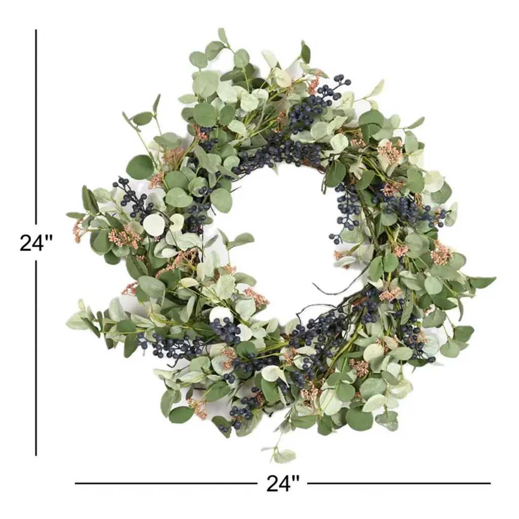 24" Farmhouse Artificial Eucalyptus Berry Spring Summer Wreath For Front Door