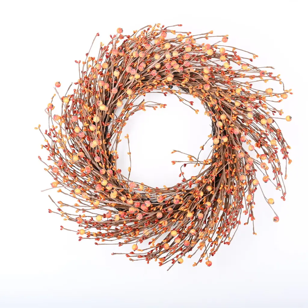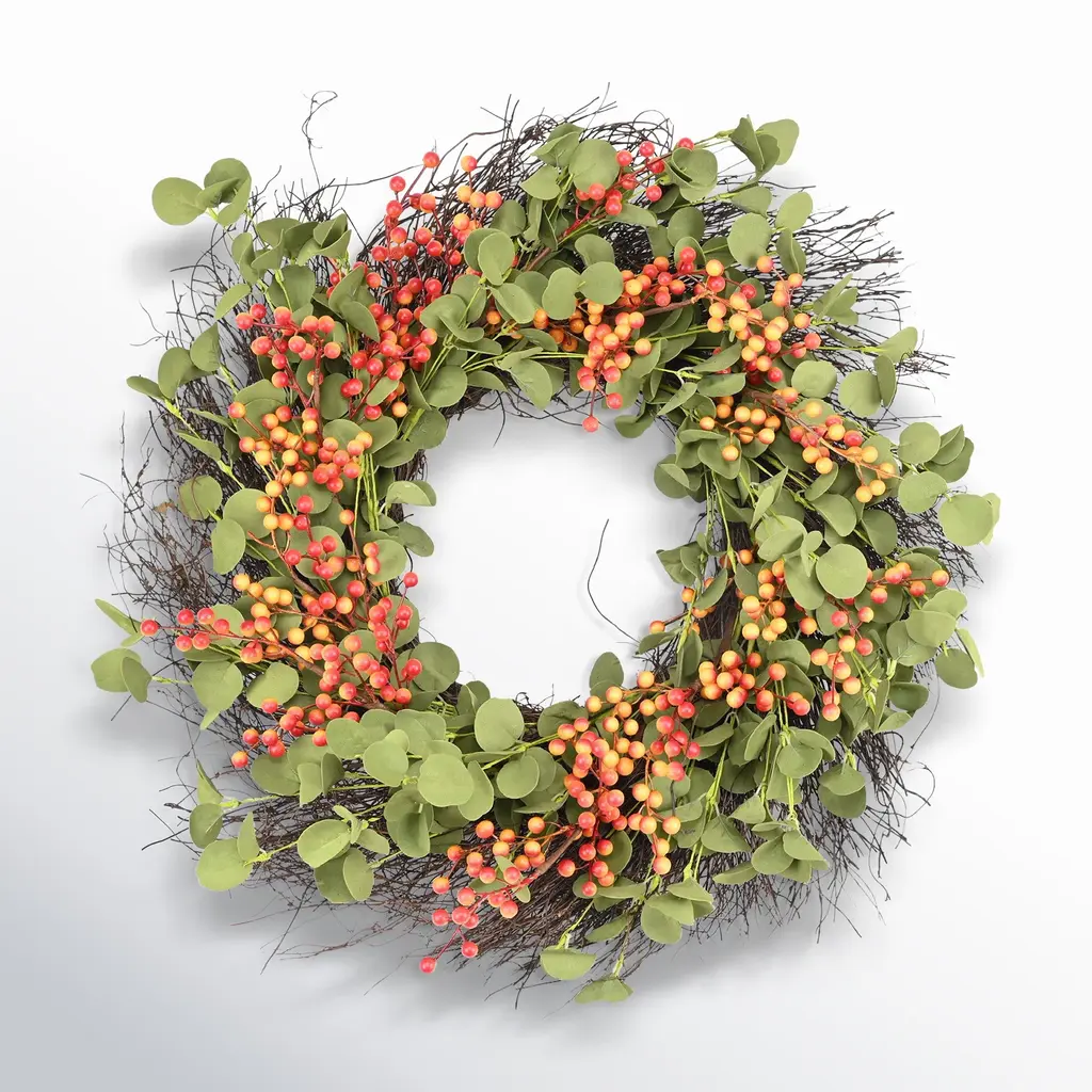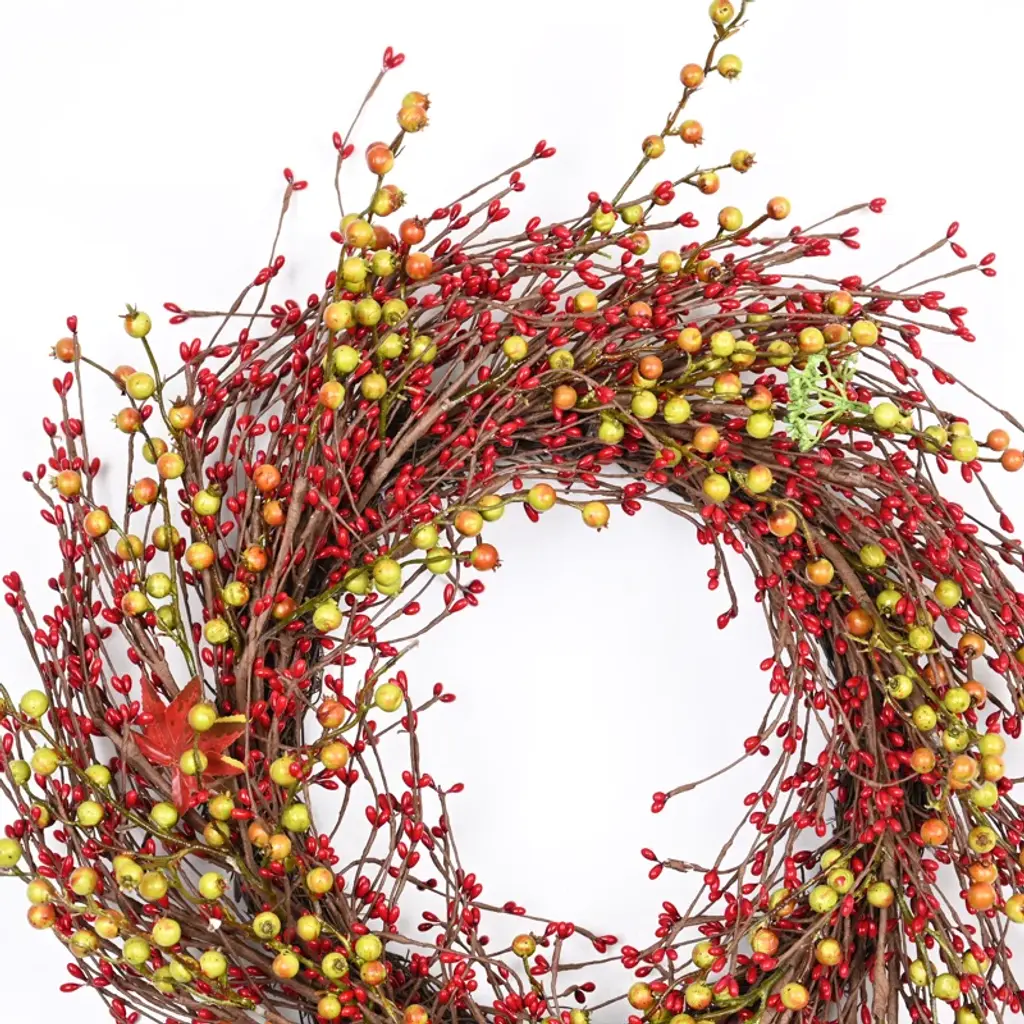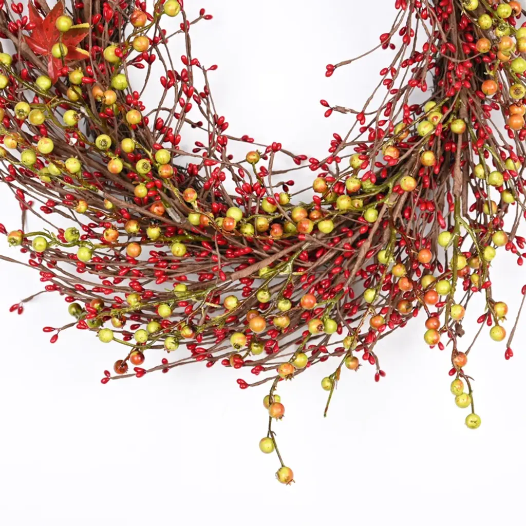 24" Farmhouse Faux Berry Thanksgiving Day Fall Wreath For Front Door