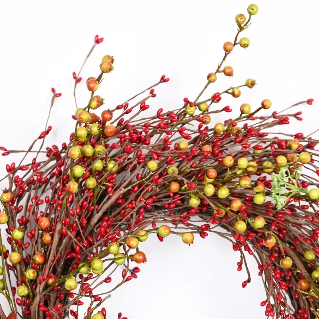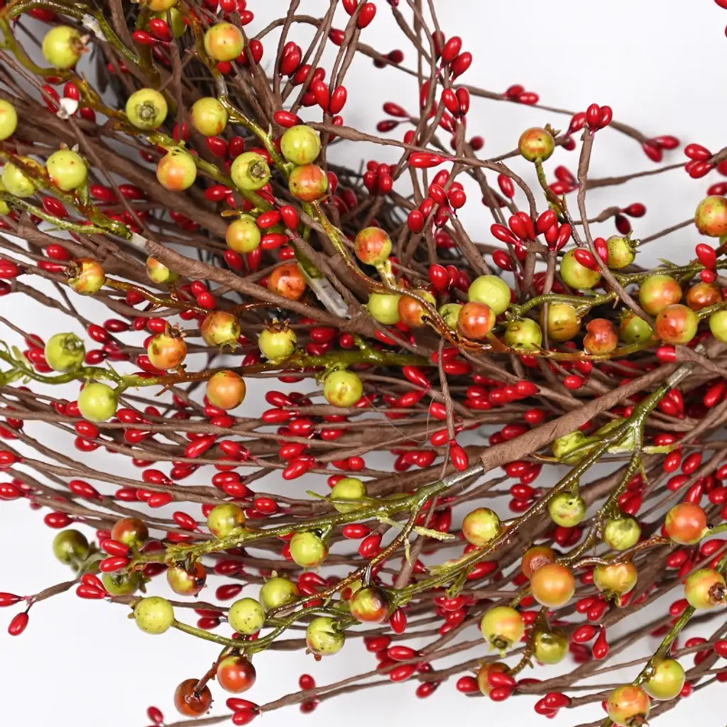 Elevate your fall decor with this Farmhouse Faux Berry Thanksgiving Day Fall Wreath. Adorned with a rich array of red berries complemented by touches of green berries, this wreath infuses your space with a cozy, rustic charm. Perfect for welcoming guests during Thanksgiving and throughout the fall and winter seasons, it brings a natural, countryside feel to your front door or entryway. Enjoy effortless beauty with this low-maintenance wreath, designed to remain stunning year after year.