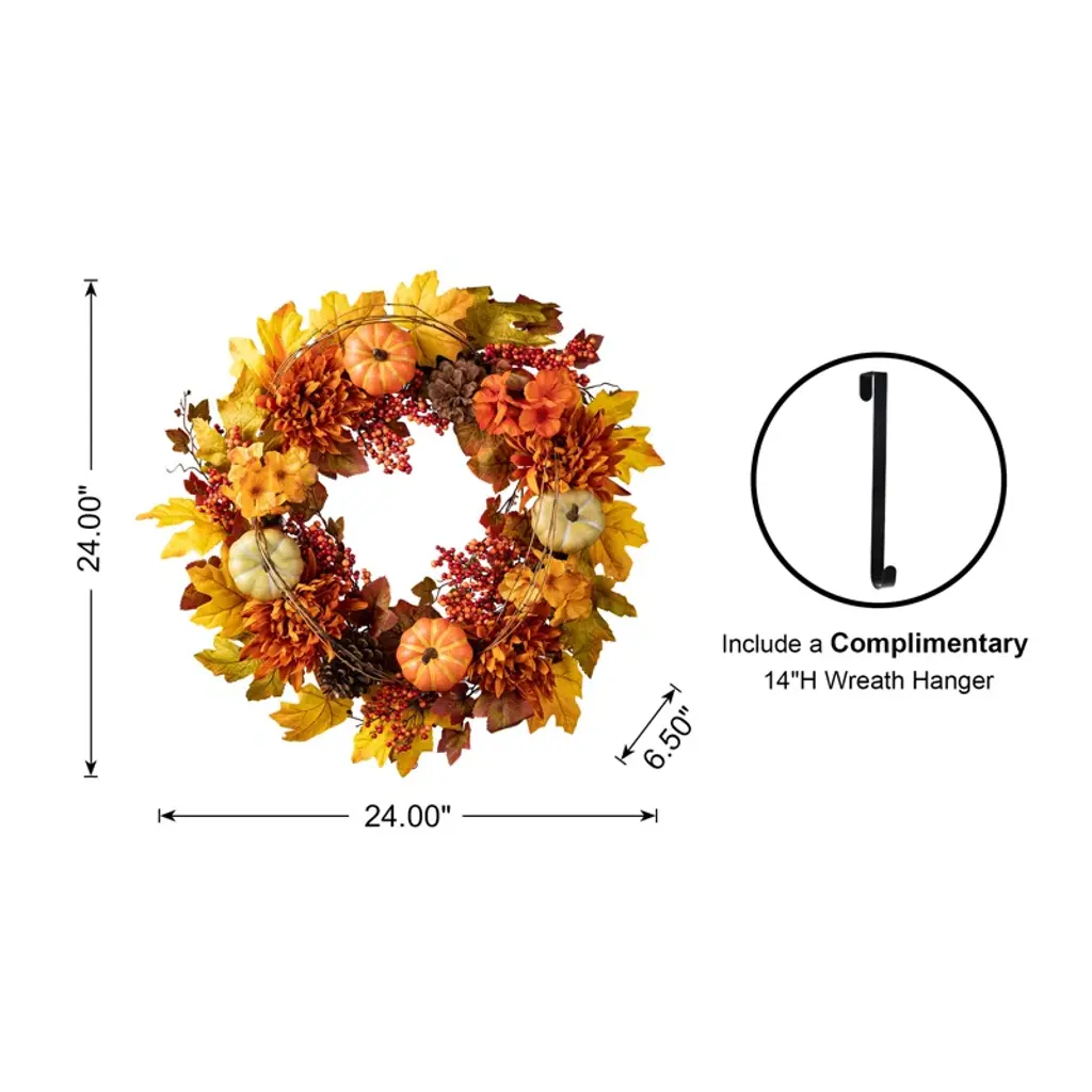 24'' Faux Pumpkin & Gourds Wreath