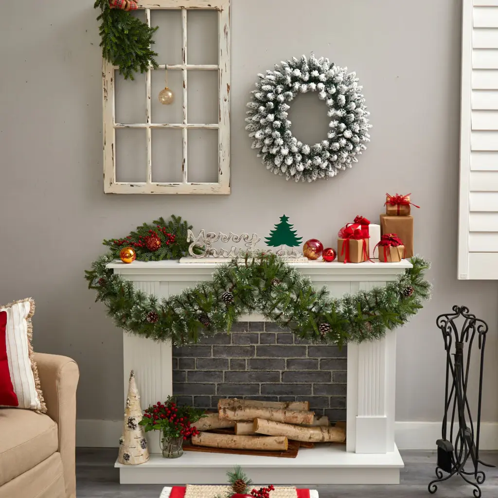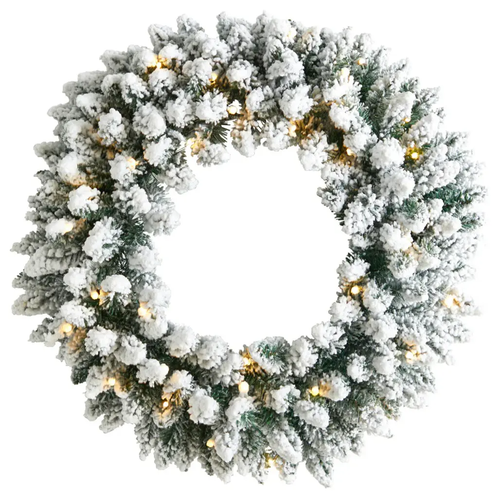 24" Flocked Faux Christmas Wreath With 160 Bendable Branches And 35 White Lights