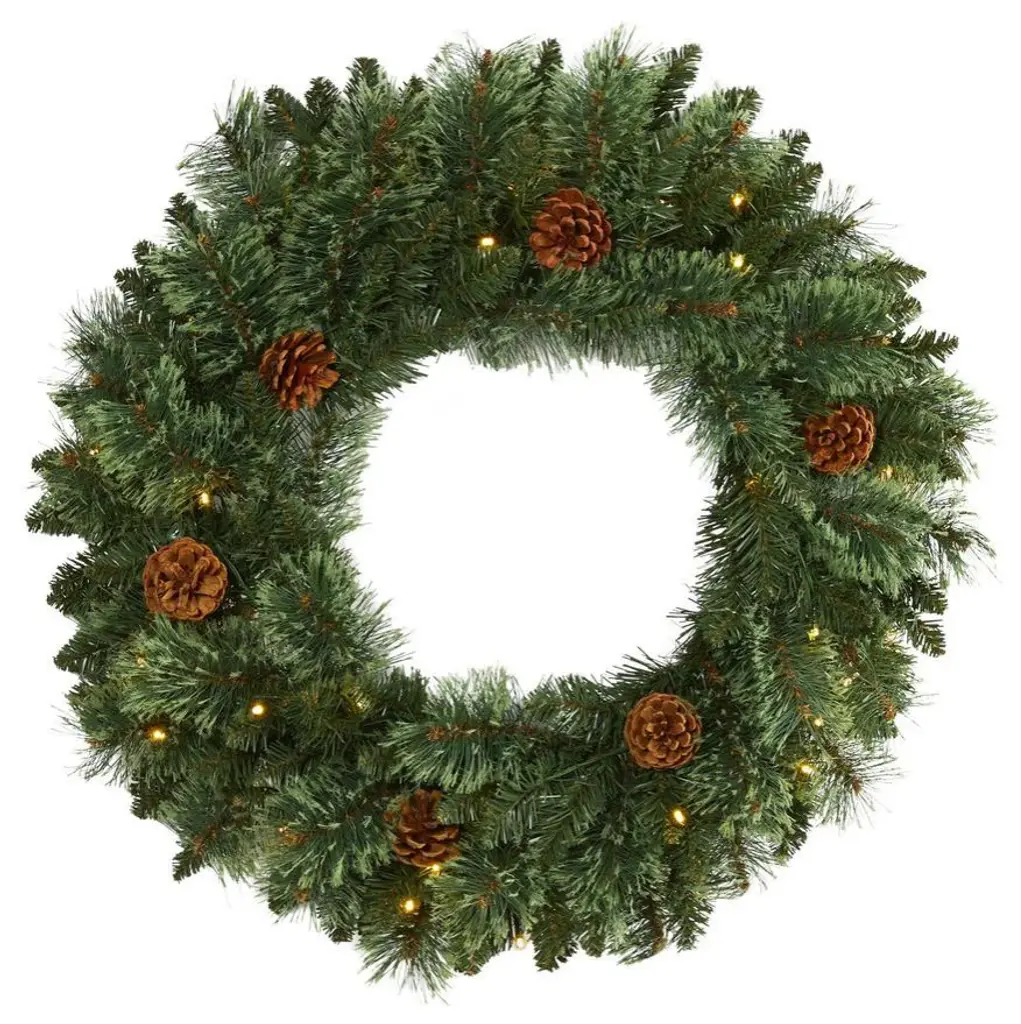 Light up your favorite seasonal accents while adding serious curb-side appeal with this artificial wreath intricately designed from a rich collection of pine foliage, carefully accented throughout with bright red holly berries that look incredibly lifelike - all frosted with a hint of faux snow. Arriving pre-strung with 35 clear LED lights to effortlessly illuminate either a wall or door, this 24� (in circumference) decorative wreath makes for an inviting accent and will undoubtedly transform any entrance all throughout the holiday season.